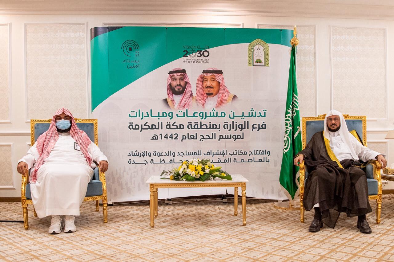 دشن معالي وزير الشؤون الإسلامية والدعوة والإرشاد رئيس اللجنة العليا لأعمال الوزارة في الحج والعمرة والزيارة الشيخ الدكتور عبداللطيف بن عبدالعزيز آل الشيخ، مساء يوم أمس الخميس الخامس من شهر ذي الحجة ١٤٤٢هـ، بمكتب معاليه في محافظة جدة، مشروعات صيانة وتشغيل بلغت تكاليفها أكثر من (31) مليون ريال، وعدداً من المبادرات التي سينفذها فرع الوزارة بمنطقة مكة المكرمة تزامنا مع بدء موسم الحج لهذا العام، تحقيقاً لرسالة الوزارة وأهدافها العامة لتوفير أعلى معايير الخدمة لضيوف الرحمن وفق البروتوكولات الصحية للوقاية من فيروس كورونا.