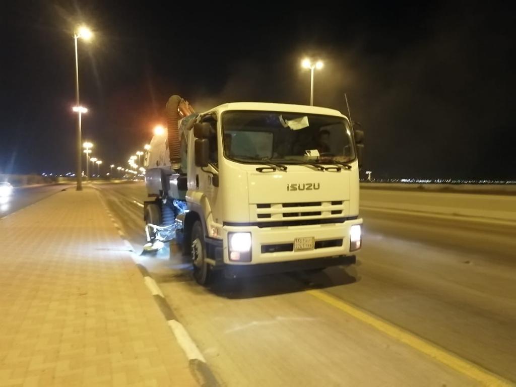 وأبان وكيل الأمين للخدمات بأنه تم تخصيص مكانس آلية للعمل على الكـنس الآلي لجميـع الشـوارع الرئيسية للواجهـة والكـورنيش وكذلك المواقف الداخلية، وسوف يستمر برنامج الكنس الآلي المكثف بحيث يتم ضغط برنامج كنس الواجهة يتم خلال يومين فقط حتى يمكن كنسه أكثر من خمس مرات قبل أول أيـام الـعيـد وسـوف يـتـم تـدعيم منطقـة الواجهـة بمكنسة إضافية وذلك خلال فترة عطلة عيد الأضحى المبارك.