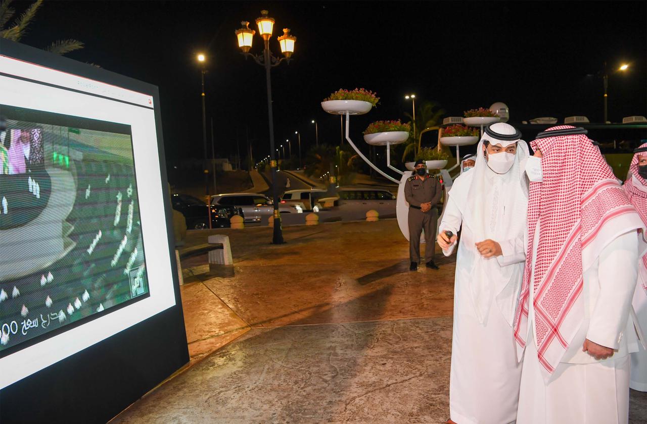 وكان في إستقبال سموه لدى وصوله موقع تدشين المشاريع في واجهة الأمير فهد بن سلطان البحرية بالمحافظة معالي رئيس جامعة تبوك الدكتور عبدالله بن مفرح الذيابي ومحافظ ضباء محمود بن حسين الحربي ورئيس بلدية المحافظة الدكتور عبدالله الغبان.