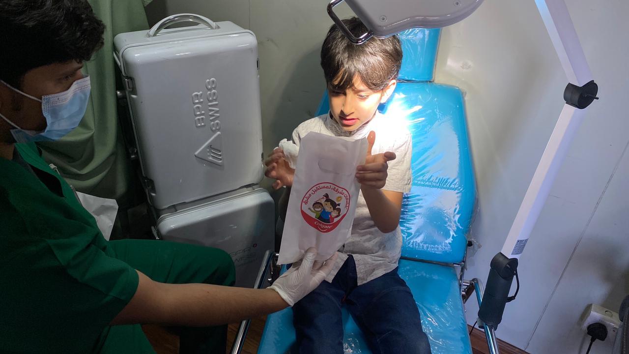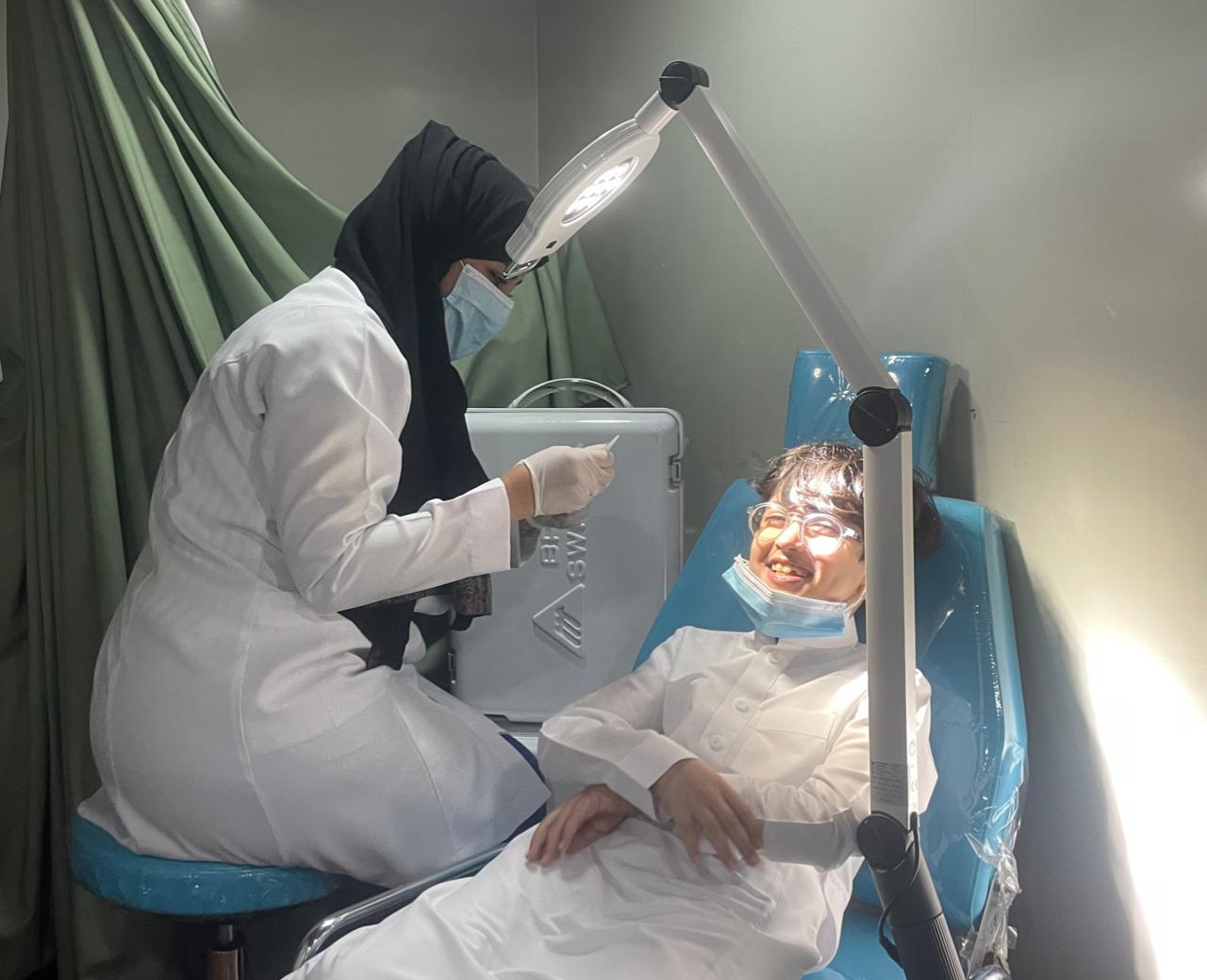 حيث أن فريق العمل الوقائي لطب الأسنان يشارك بفريق طبي متكامل يضم أطباء، ومساعدي أطباء أسنان، وأخصائيي وفنيي صحة فم، وذلك خلال عيادة متنقلة يضم عيادة محمولة ومعرض ومطويات وملصقات، لتعزيز الجوانب التوعوية للصغار والكبار، إضافة إلى إجراء فحص للأطفال، وتطبيق مادة الفلورايد الوقائية على أسنانهم، وتوزيع هدايا وقائية عبارة عن معجون وفرشاة أسنان.