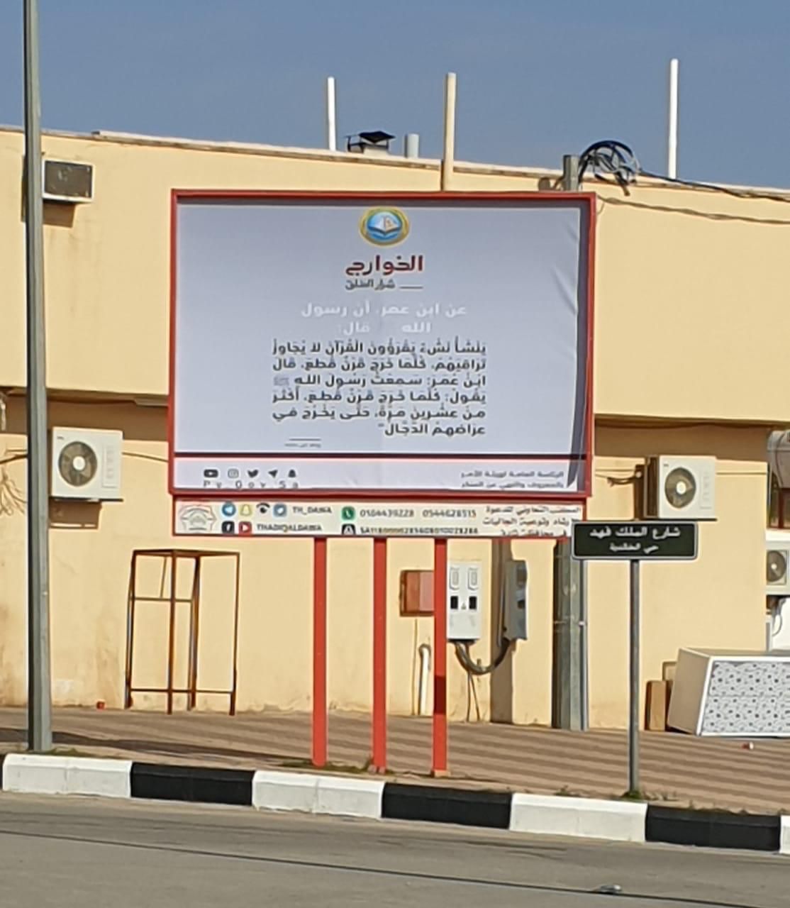 وقد نشرت عبارات توعوية تتضمن تعزيز منهج أهل السنة والجماعة في وجوب السمع والطاعة والتحذير من الجماعات والتحزبات عبر الشاشات الرقمية في الميادين العامة والحدائق والمتنزهات والطرق الرئيسة، شملت المحافظة والمراكز التابعة لها.
