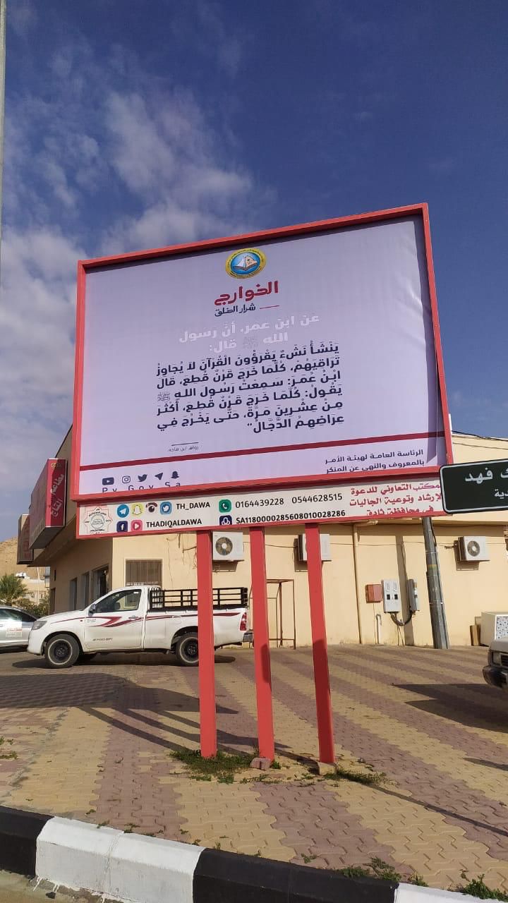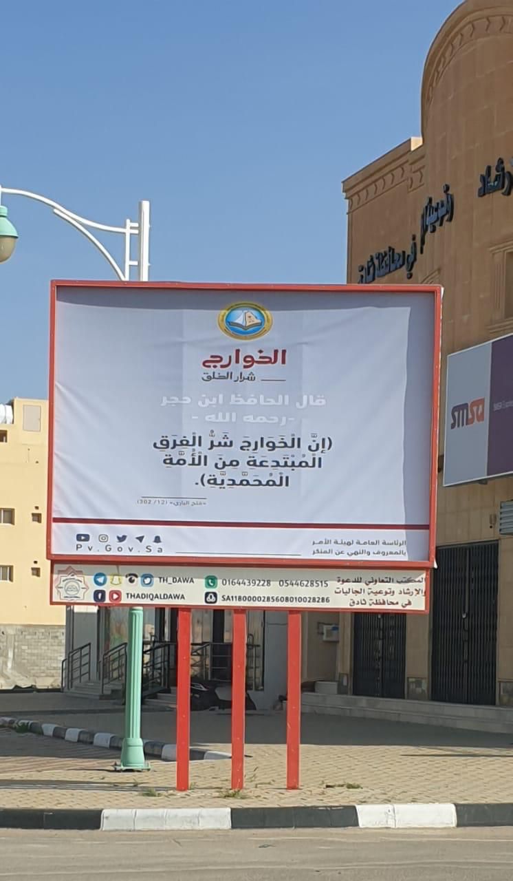 فعلت هيئة الأمر بالمعروف والنهي عن المنكر بمحافظة ثادق حملة «الخوارج شرار الخلق» والتي دشنها معالي الرئيس العام لهيئة الأمر بالمعروف والنهي عن المنكر الشيخ الدكتور عبدالرحمن بن عبدالله السند، وأطلقها سمو أمير منطقة الرياض صاحب السمو الملكي الأمير فيصل بن بندر بن عبدالعزيز.
