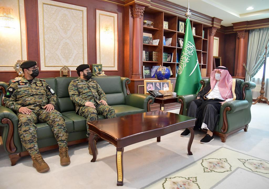 استقبل صاحب السمو الملكي الأمير محمد بن ناصر بن عبدالعزيز أمير منطقة جازان بمكتبه اليوم، قائد قوة الأفواج الأمنية بالمنطقة السابق العقيد محمد بن فارس الزهراني وقائد القوة المعين حديثاً المقدم الركن لطفي بن خلف الغامدي.