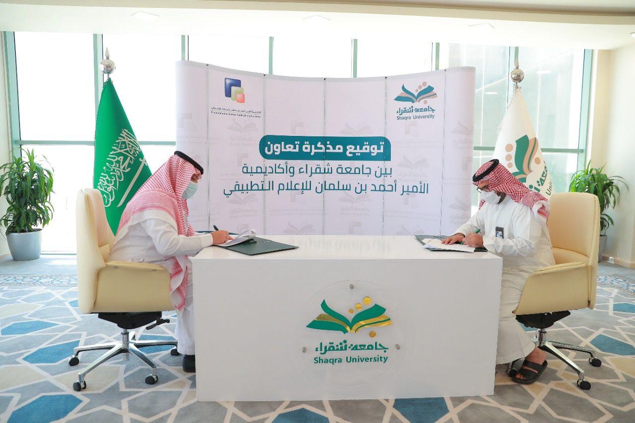 وقع رئيس جامعة شقراء الأستاذ الدكتور علي بن محمد السيف، اتفاقية تعاون مشترك مع أكاديمية الأمير أحمد بن سلمان للإعلام التطبيقي، الذي وقع على الاتفاقية من جانبها مدير عام الأكاديمية الأستاذ فيصل بن صالح الغامدي، وذلك في إطار حرص الجانبين على تعزيز أواصر التعاون في مجال التعليم والتدريب في مجال الإعلام التطبيقي.