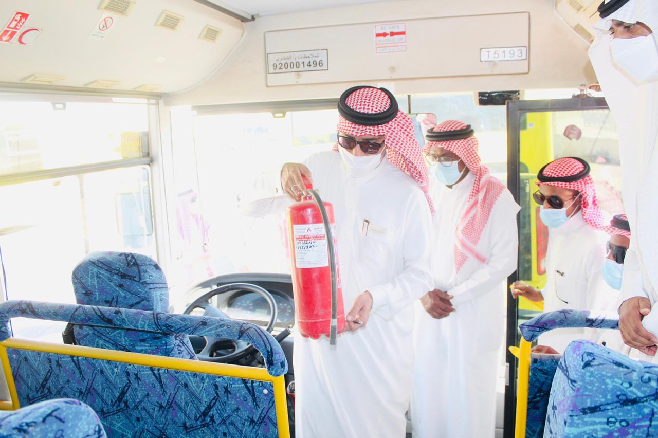 واطلع مدير التعليم  على التجهيزات الخاصة بالحافلات، ووسائل الأمن والسلامة ومطابقتها للمواصفات الفنية،, حاثاً على ضرورة إتباع الإرشادات التوعوية ومراعاة جوانب الأمن والسلامة في عمل الحافلات المدرسية والاهتمام بالتطوير المهني للسائقين.