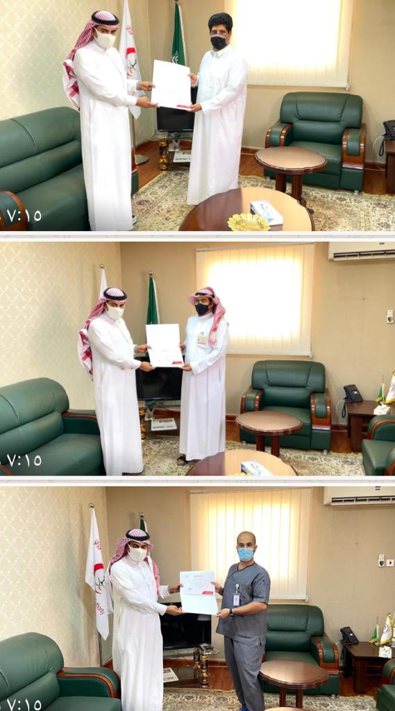 مدير الهلال الأحمر بالجوف يكرم بعض مدراء الإدارات بالفرع
