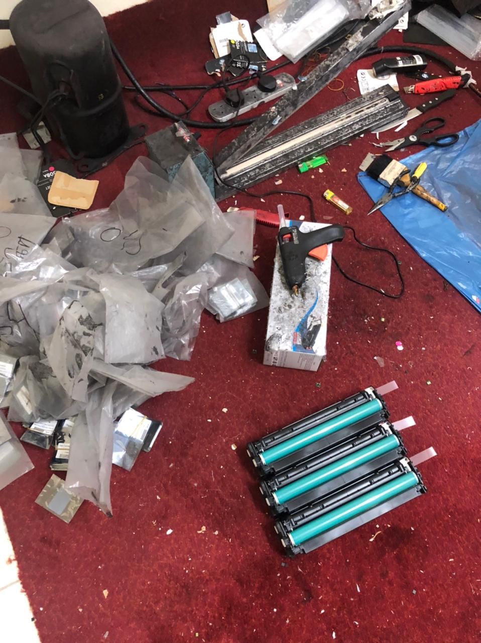 وفي التفاصيل، بعد أعمال تحري ومتابعة قامت الفرق الرقابية لوزارة التجارة بالمنطقة الشرقية وبالتعاون مع شرطة المنطقة، بالوقوف على منزلين تستخدمها عمالة مخالفة لصناعة وتعبئة حبر طابعات مقلد لعلامات تجارية معروفة، وبتفتيش المنزلين عثر بداخلهما على الأدوات المستخدمة في صناعة وتعبئة حبر الطابعات، وتم ضبط الكميات الموجودة، وتسليم العمالة المخالفة للجهات الأمنية، واستكمال الإجراءات النظامية بحق المخالفين.
