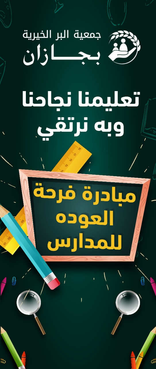 أطلقت جمعية البر الخيرية بجازان مبادرة ” تعليمنا نجاحنا وبه نرتقي ” وذلك بمناسبة العودة للمرارس بتوزيع 1500 حقيبة مدرسية و 7500 كسوة مدرسية و 5000 سلة غذائية يستفيد منها الطلاب والطالبات، حيث تهدف المبادرة لتحقيق التعلم والشراكات المجتمعية في المجتمع، خلال توفير الجمعية الحقائب المدرسية بجميع مستلزماتها وكسوة العودة للمدرسة بالإضافة الى السلال الغذائية والكسوة للطلاب والطالبات.
