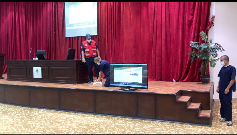 نظمت دار الملاحظة الاجتماعية بحائل التابعة لفرع وزارة الموارد البشرية والتنمية الاجتماعية بالمنطقة , بالتعاون مع هيئة الهلال الأحمر السعودي، دورة توعوية استهدفت النزلاء بدار الملاحظة الاجتماعية القاها المدرب عواد المفضلبي الشمري.