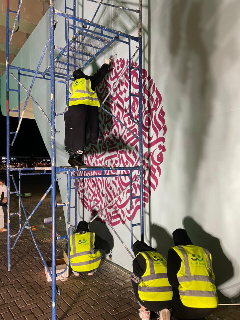 هذا وقدمت جمعية العمل التطوعي الشكر لوزارة الثقافة على اتاحة الفرصة لمتطوعيها للمشاركة بهذا العمل الفني الجميل والذي يعزز حضور الخط العربي بالمجتمع .