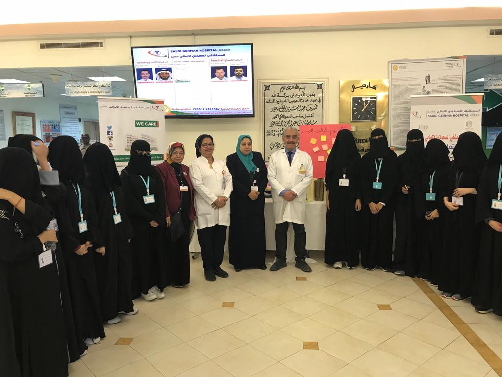 المستشفى السعودي الالماني بعسير يساهم في جميع الايام العالمية ويدعم كل المناشط المجتمعية بالمنطقة وفي هذا المجال تم و بالتعاون مع ثانوية مدارس الرواد للبنات بقاعدة الملك خالد الجوية بخميس مشيط من خلال تفعيل اليوم العالمي للتوحد تحت شعار ( لنكن منهم) حيث قامت مجموعه من طالبات المدرسه بزيارة المستشفي السعودي الالماني بعسير وأقامة معرض بالاستقبال الرئيسي بالمستشفى