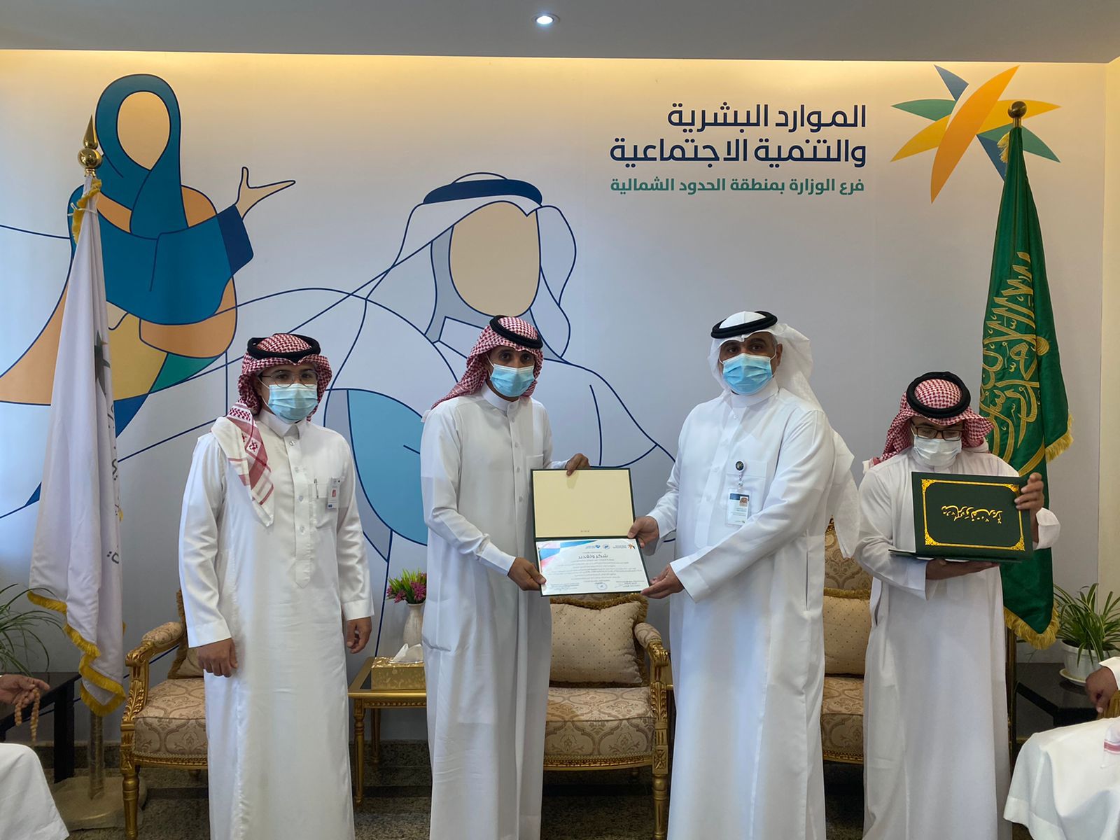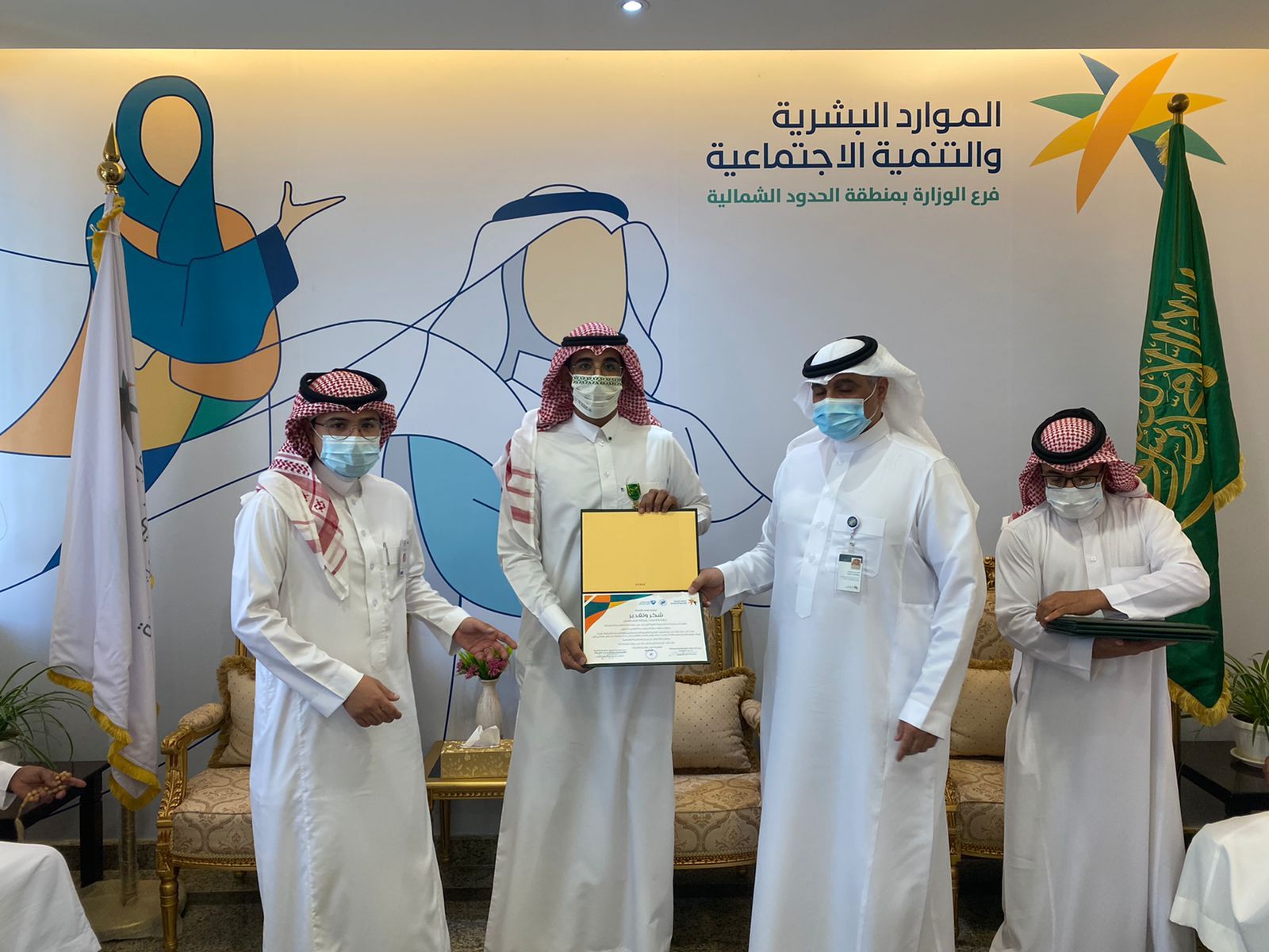 قام فرع الموارد البشرية والتنمية الاجتماعية بمنطقة الحدود الشمالية بالاحتفاء باليوم العالمي للعمل الإنساني بالتعاون مع هيئة حقوق الانسان بالمنطقة وذلك باستضافة عدد من المتبرعين بأعضائهم.