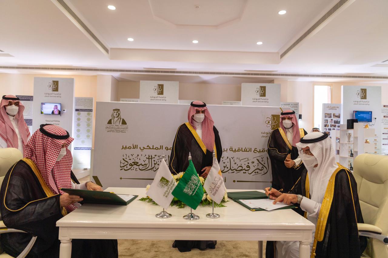 كما دشن المعرض الدائم لجامعة الجوف الذي يحوي العديد من أركان العمادات والوحدات، مستمعا من وكلاء الجامعة لشرح عنه وأهم الإنجازات التي حققتها الجامعة في مجال الجودة والبحث العلمي والتعليم، كما شهد سموه توقيع مذكرة تعاون مشترك بين جامعة الجوف وبنك البلاد.
