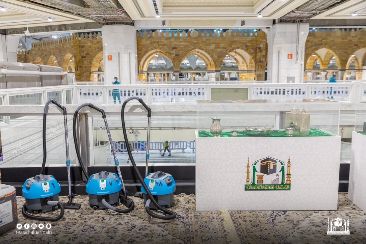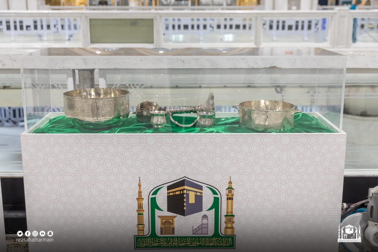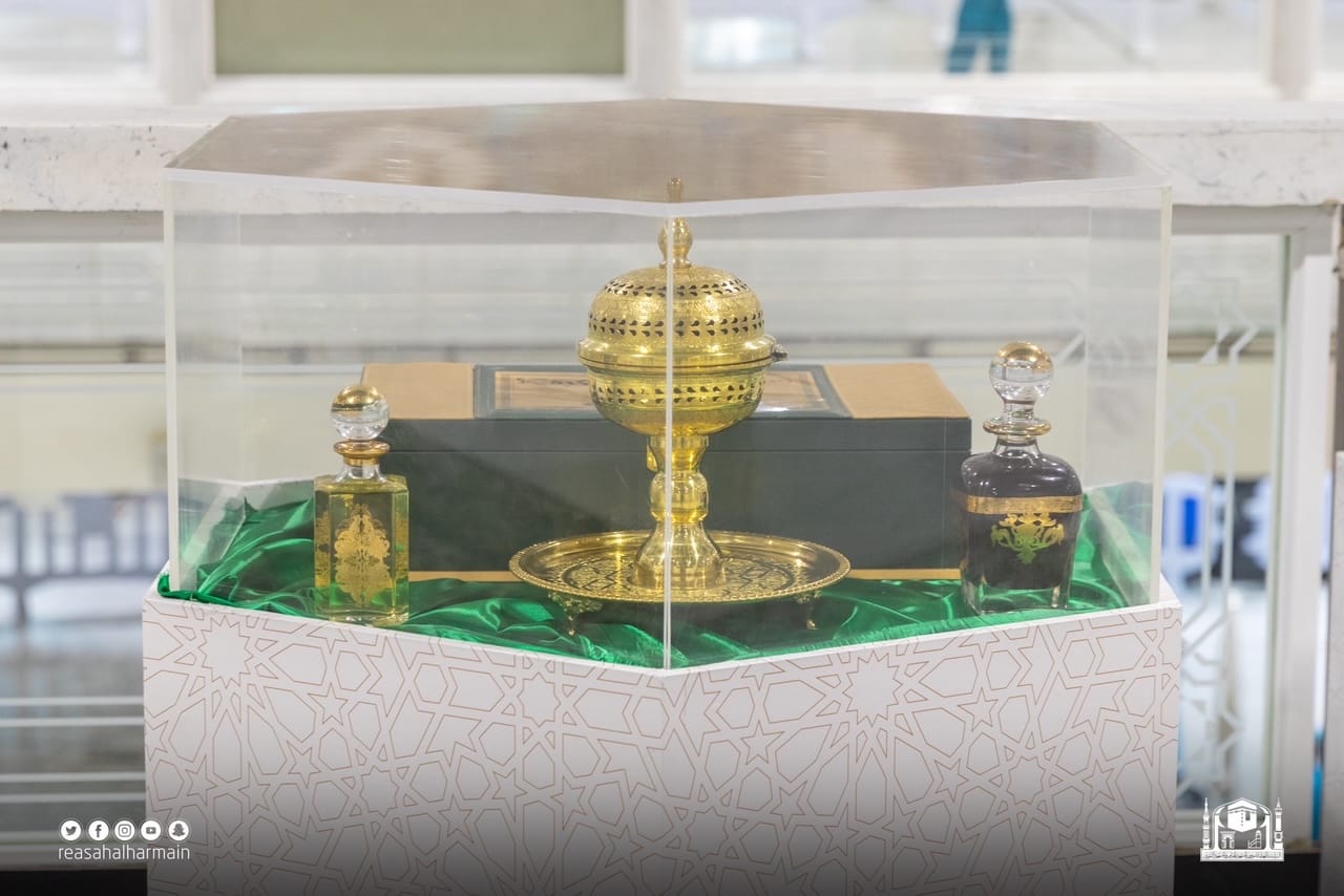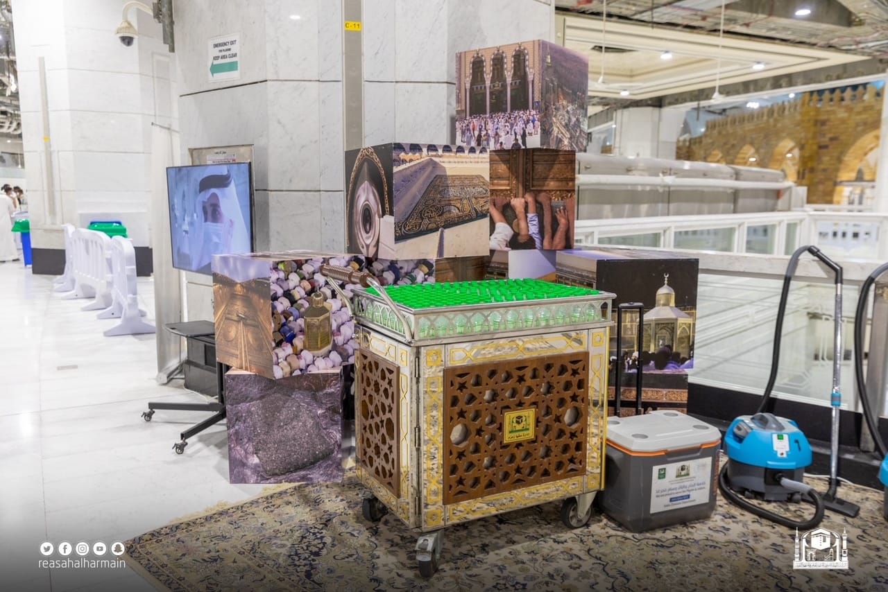 وشمل المعرض الواقعي على عرض صور لمقتنيات تطيب وتنظيف الكعبة المشرفة والأدوات المستخدمة في ذلك , والتي شملت (طاسة ) تستخدم لخلط ماء زمزم المبارك مع ماء الورد , ( الكأسة ) التي تستخدم لخلط ماء زمزم مع الورد الموجود في الطاسة , و( جالون ) يستخدم لحفظ ماء زمزم المبارك المخلوط بماء الورد , كما شمل ( أطياب ) خاصة لكسوة الكعبة المشرفة , وقطعة قماش تستخدم لتمسيح جدران الكعبة المشرفة , ( مكنسة يدوية ) تستخدم لنظافة الكعبة من الغبار والأتربة قبل الغسل , ( مكنسة يدوية ) تستخدم لتوزيع وتجفيف العطر الخاص بالكعبة المشرفة , ( وماء الورد ) والذي يستخدم لتطيب الكعبة المشرفة ( الأرضيات – الجدار الداخلي )