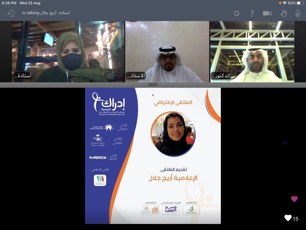 وشارك الأستاذ عبدالله بن محمد القرني المدير التنفيذي لجمعية وسم للتصلب المتعدد بجدة كلمة بعنوان “خدمات جمعيات التصلب المتعدد” كما شاركت الدكتورة هند بنت عبدالله النجاشي استشاري مخ واعصاب بعنوان “التصلب المتعدد أسبابه وأعراضه”