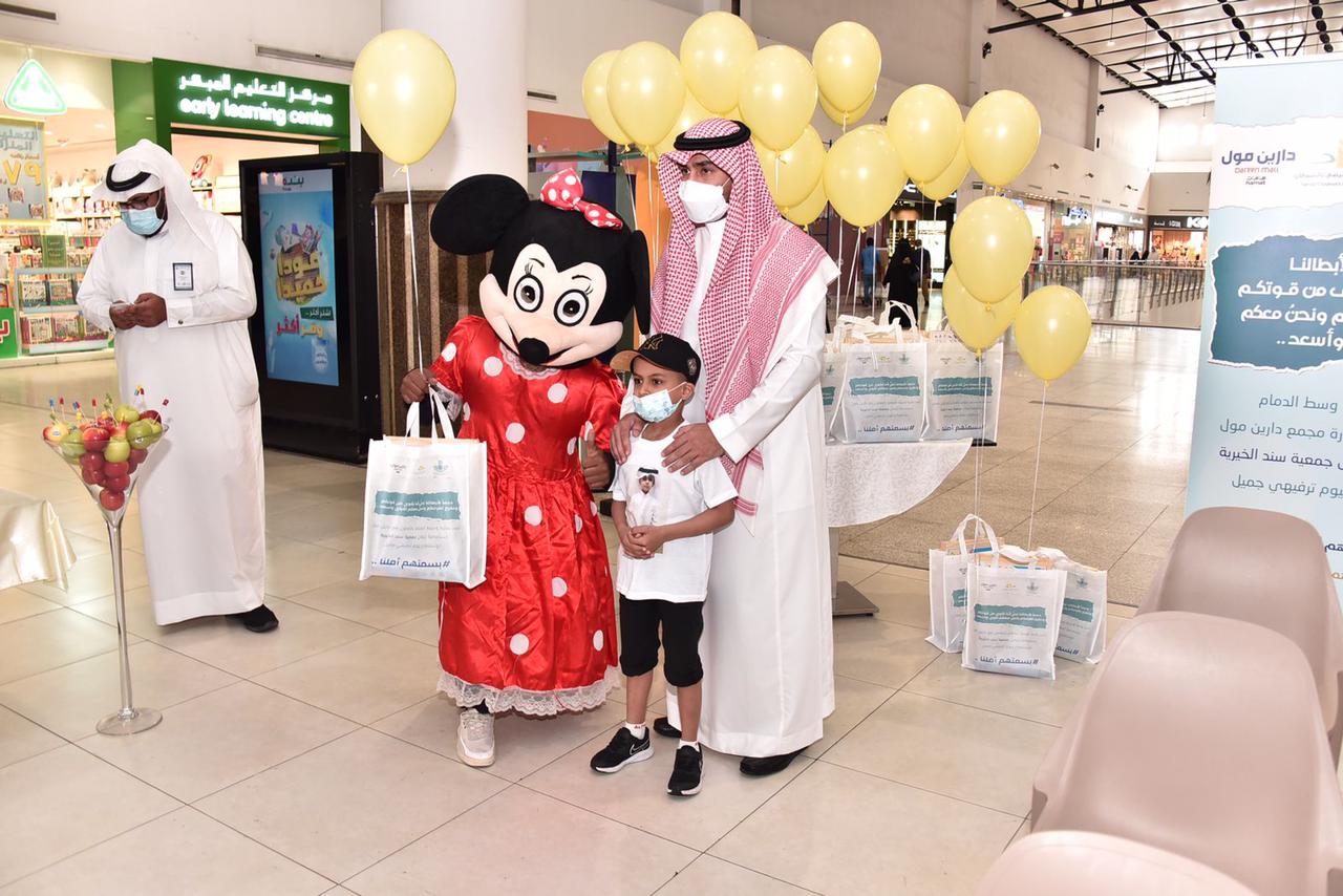 استضافت بلدية وسط الدمام بالتعاون مع مجمع دارين مول أمس الخميس، أبطال وأطفال جمعية سند الخيرية ضمن مبادرة “بسمتهم أملنا ” وذلك للاستمتاع والترفيه وإدخال الفرح في قلوب الأطفال، من خلال إقامة فعاليات احتوت على عدد من الأركان مثل ركن التلوين وركن التلوين على الوجه وعددًا من الأنشطة الترفيهية.
