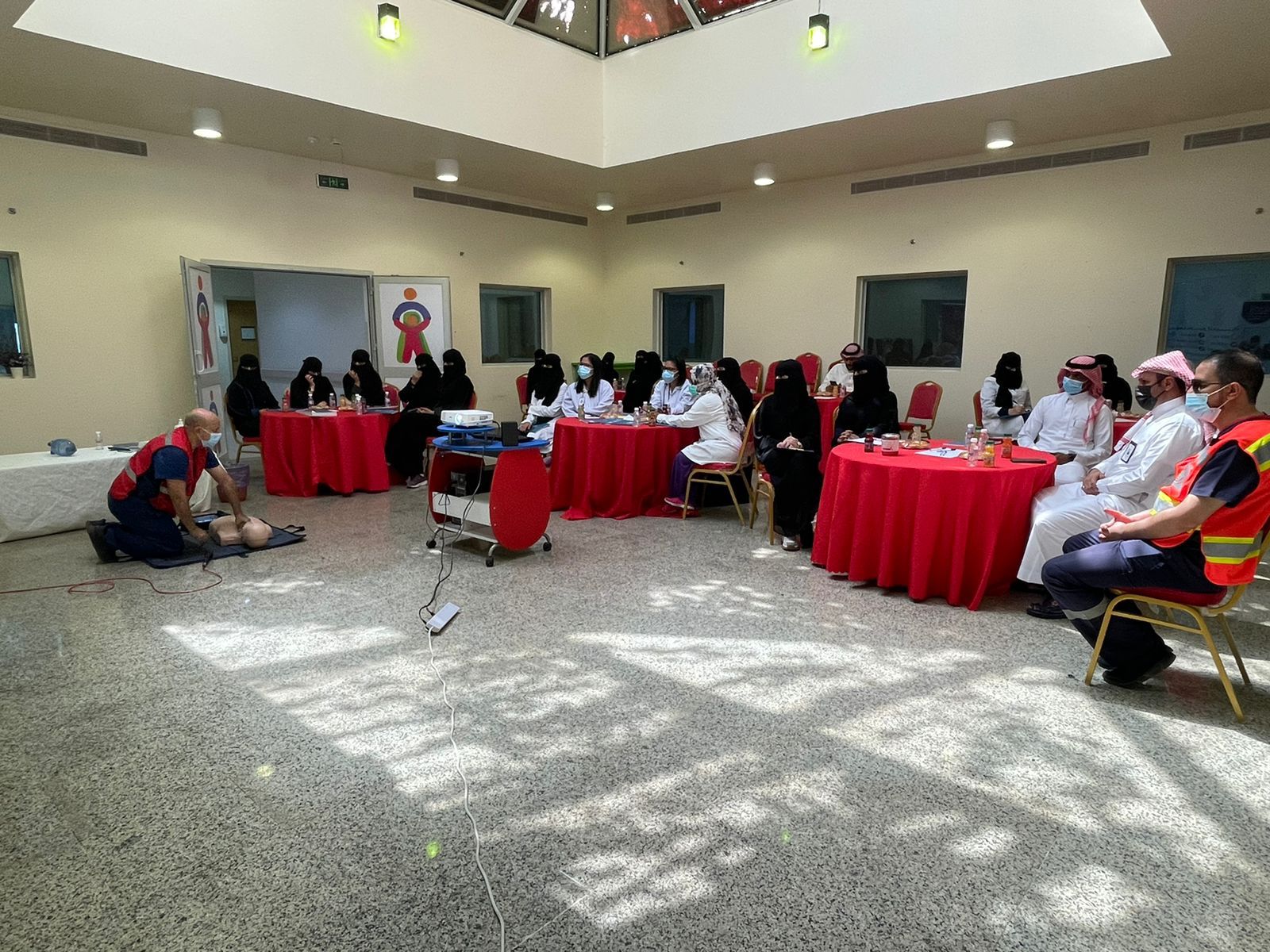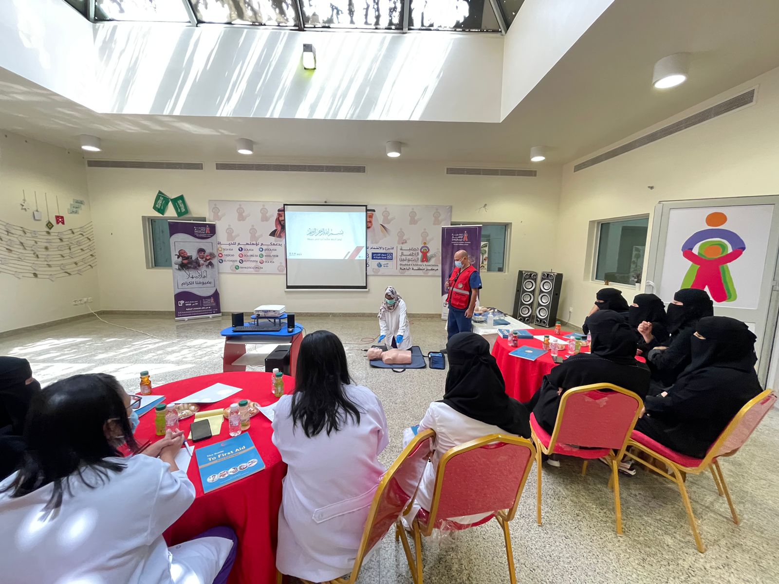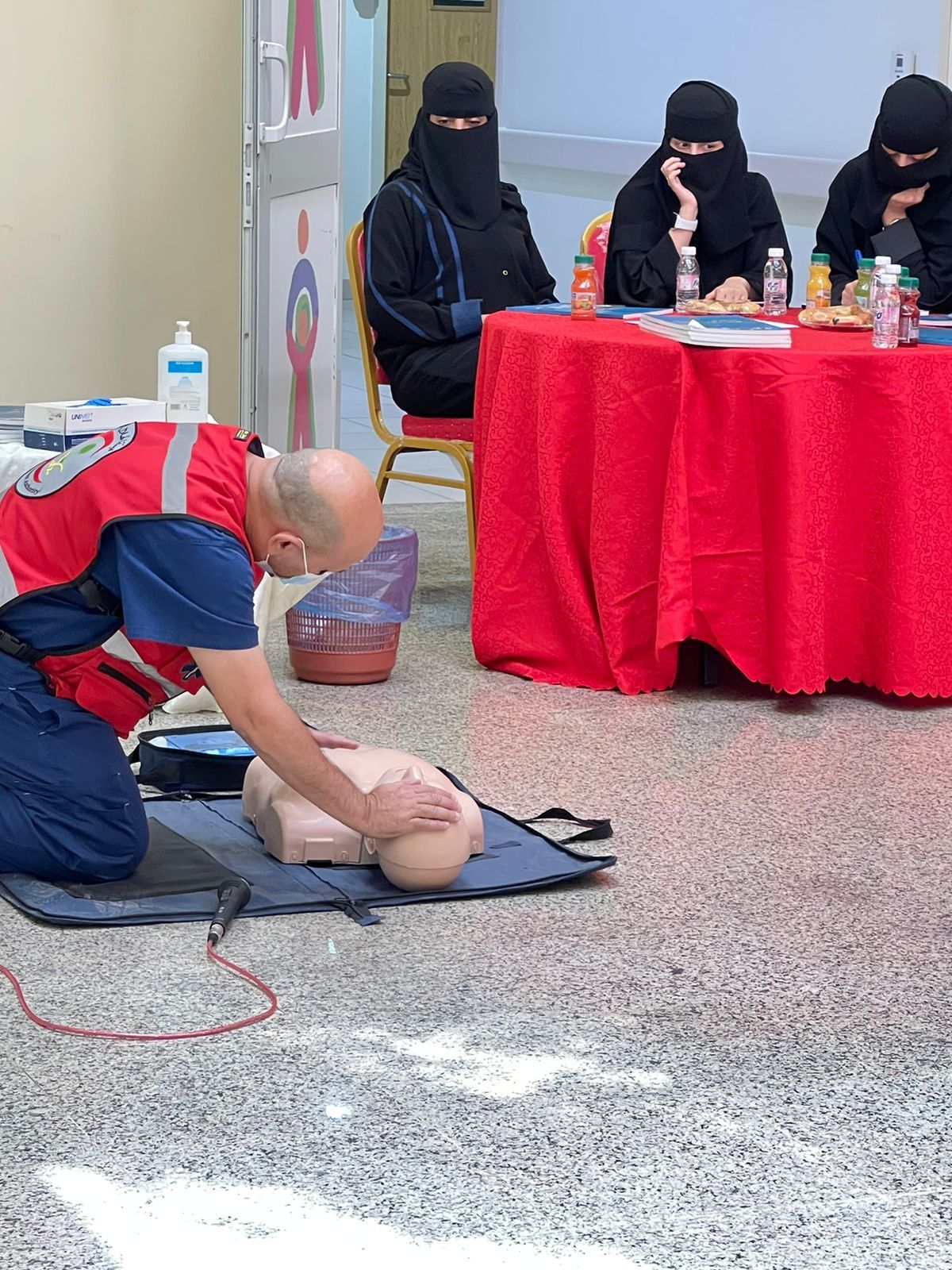 وتابع “الزهراني”: أُقيم أيضًا ركن الإسعافات الأولية والإنعاش القلبي الرئوي، مع الشرح لبعض الحالات الطارئه ، وكيفية التعامل معها للحد من مضاعفاتها، والتطبيق العملي لبعض المهارات الاسعافيه ، والإجابة على أسئلة لمنسوبي الجمعيه بعدد 24 متدرب ومتدربه.