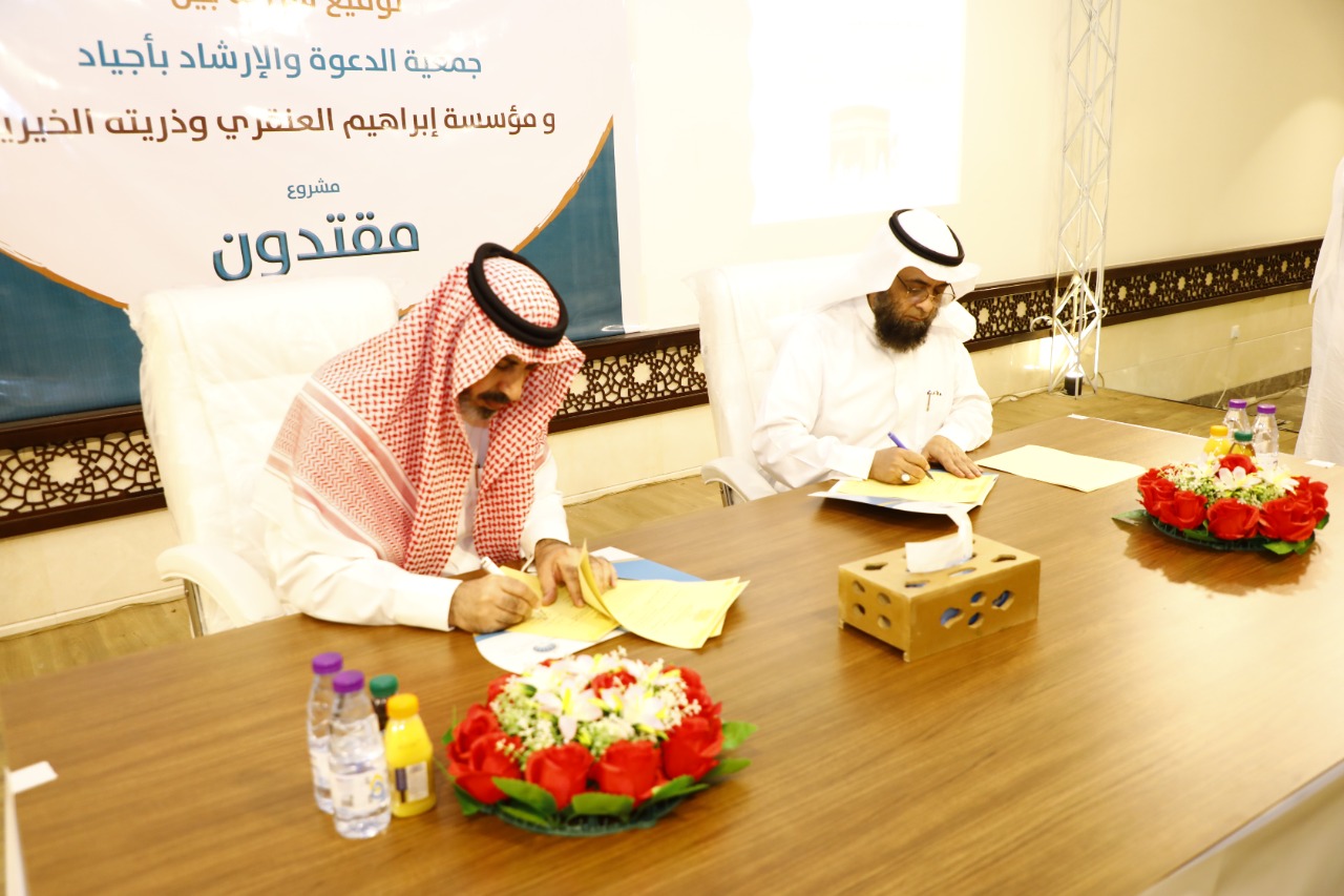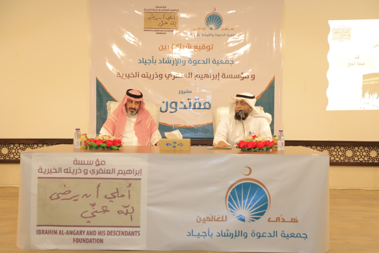 جمعية “أجياد” للدعوة ومؤسسة “العنقري” الخيرية تُوَقّعان شراكة لتنفيذ مشروع “مقتدون”