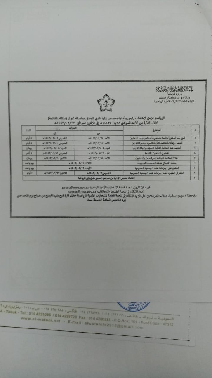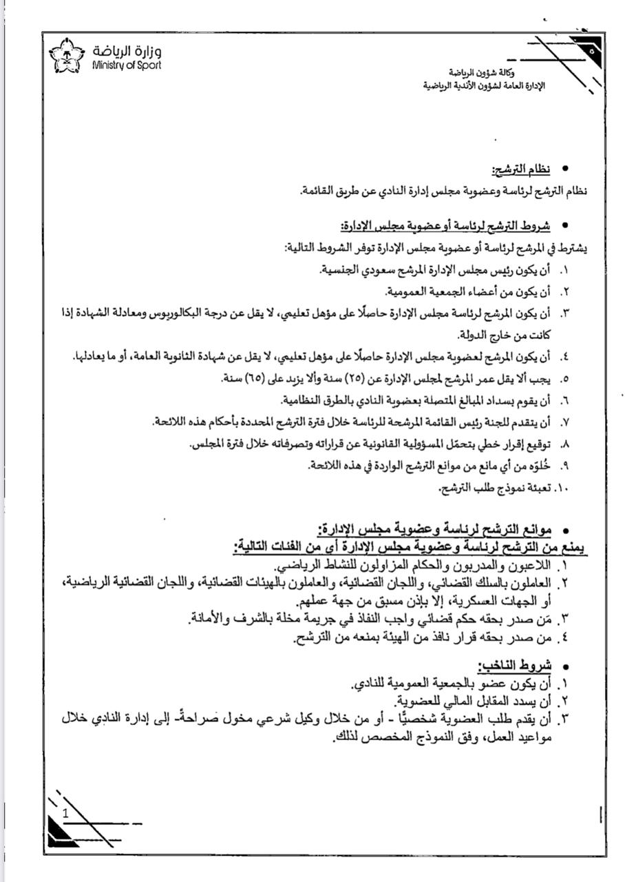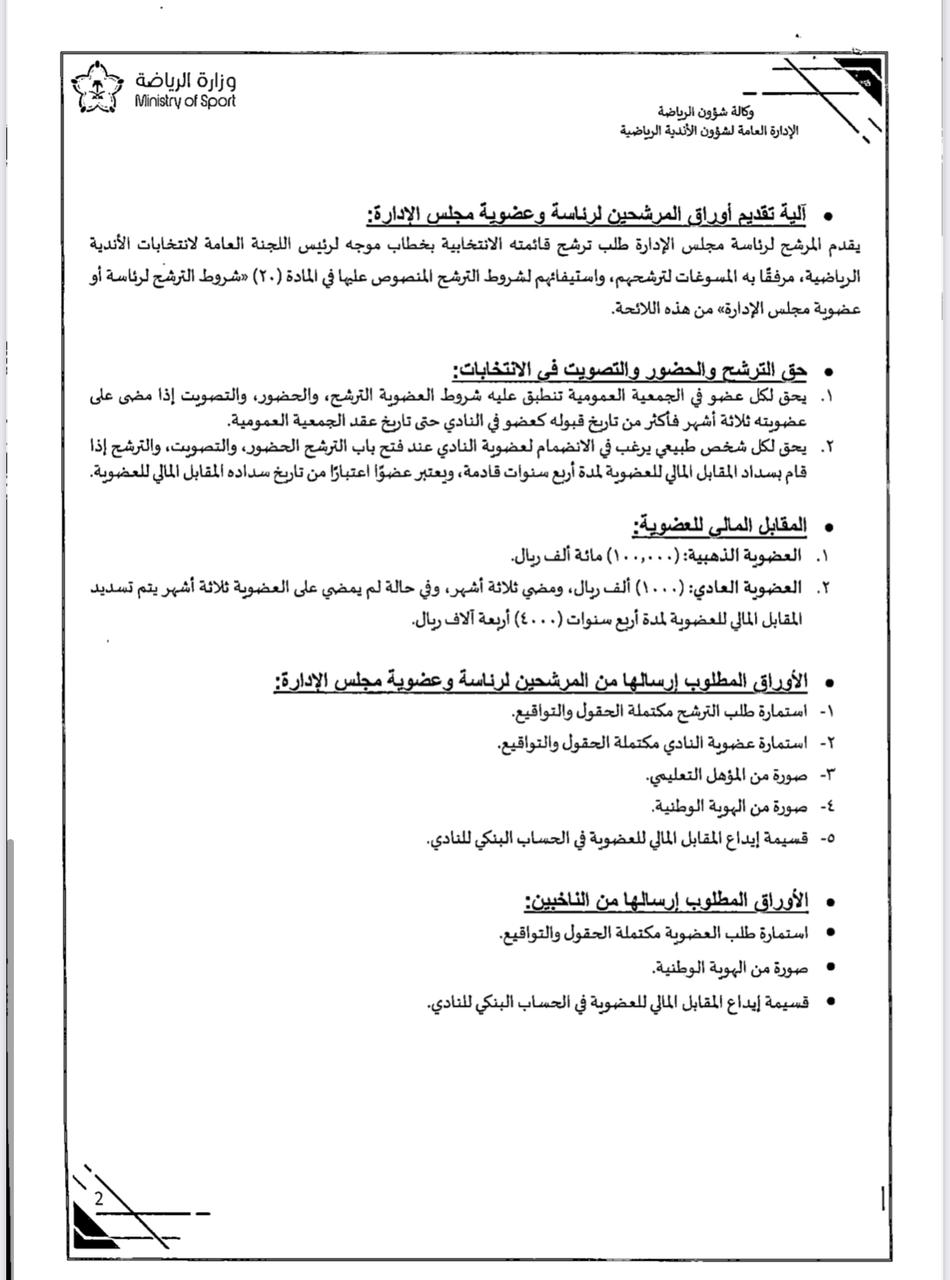 أعلنت اللجنة العامة لانتخابات الأندية الرياضية عن فتح باب الترشيح لرئاسة وعضوية مجلس إدارة النادي الوطني بنظام القائمة (للمرة الثانية)وفقاً للمادة (65) من اللائحة الأساسية للأندية الرياضية، وذلك لمدة 5 أيام خلال الفترة 28 / 1 -1-2 /1443هـ.