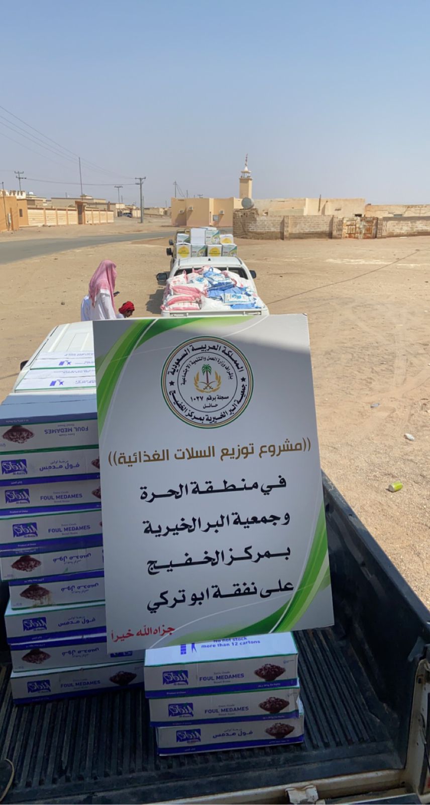 قامت جمعية البر الخيرية بمركز الخفيج بمحافظة الحائط في منطقة حائل، بتوزيع السلال الغذائية على مستفيديها من الأرامل والأيتام والمطلقات والمحتاجين من أهل الزكاة المسجلين بالجمعية.