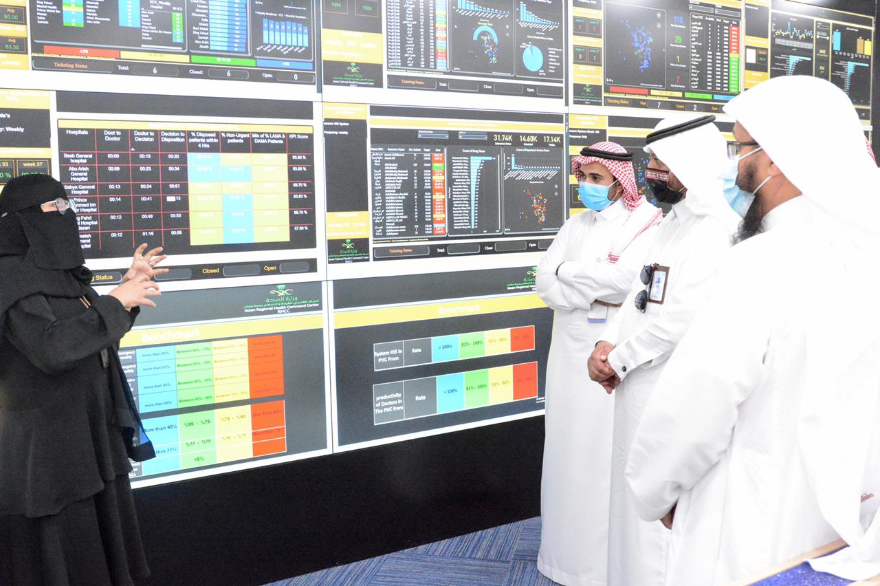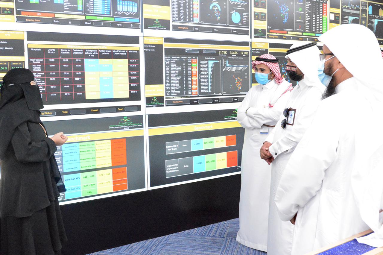وقدم مدير المركز الإقليمي الصحي للقيادة والتحكم الدكتور أحمد الشبلي خلال الجولة التعريفية شرحا وافيا عن إمكانات المركز ومؤشرات الأداء الرئيسية والبيانات التي يتم تحليلها من الكادر الطبي بالمركز وعمل فريق العمل في متابعة المؤشرات المتدنية في جميع المنشآت الصحية بالمنطقة والعمل على معالجتها لتحسين الأداء من أجل تقديم خدمات صحية أفضل للمرضى في المنطقة .