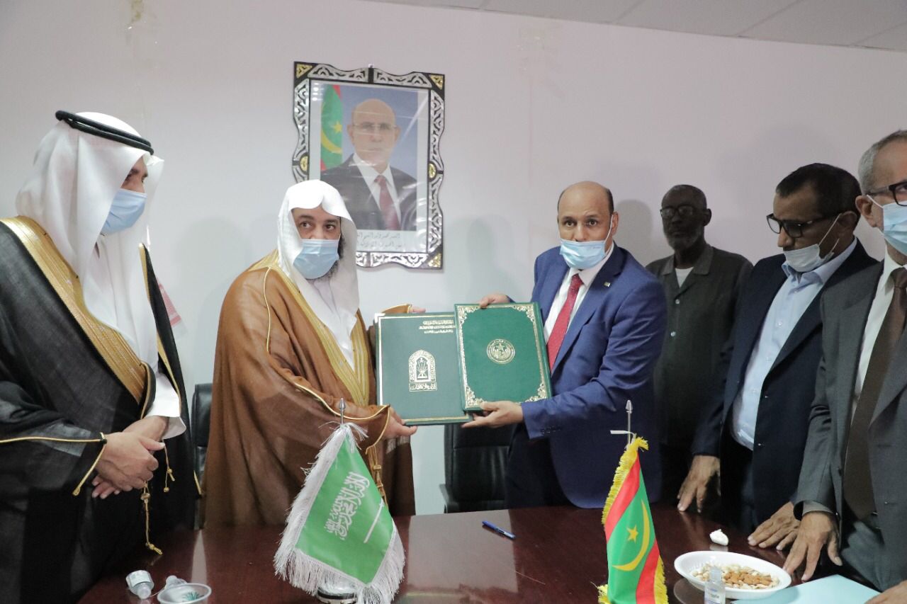 حيث وقع من جانب وزارة الشؤون الإسلامية بالمملكة فضيلة وكيل الوزارة للشؤون الإسلامية المكلف الشيخ عواد بن سبتي العنزي، ومن جانب وزارة الشؤون الإسلامية والتعليم الأصلي بجمهورية موريتانيا سعادة الأمين العام للشؤون الإسلامية والتعليم الأصلي الدكتور بيت الله أحمد لسود، وذلك بحضور سفير خادم الحرمين الشريفين لدى جمهورية موريتانيا الدكتور هزاع بن زبن المطيري وعدد من كبار المسؤولين من الجانبين.