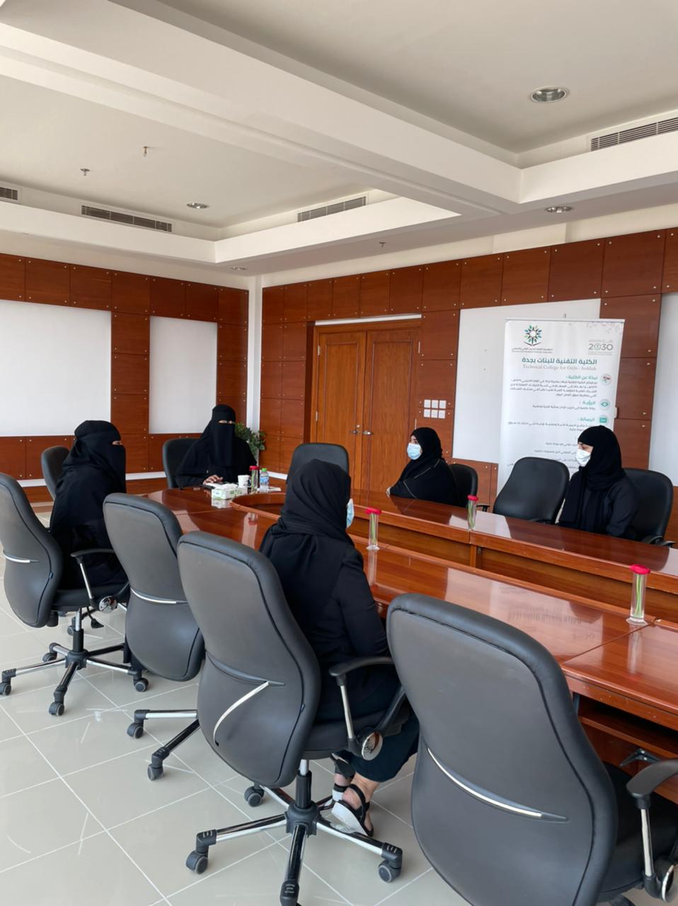 تلا الجولة عقد اجتماعات متعددة مع قيادات الكلية ومنسوباتها من مدربات واداريات ومتدربات تحقق فيها التباعد الجسدي واخذ الاحترازات واستمعت خلال اللقاء للمنسوبات من خلال معرفة الصعوبات التي تواجههن واهمية تذليل الصعاب من اجل سير العملية التدريبيه على الوجه المطلوب كما اكدت سعادتها خلال اجتماعتها على حرص المؤسسة على منسوبيها من خلال توفير بيئة تدريبيه أمنه.