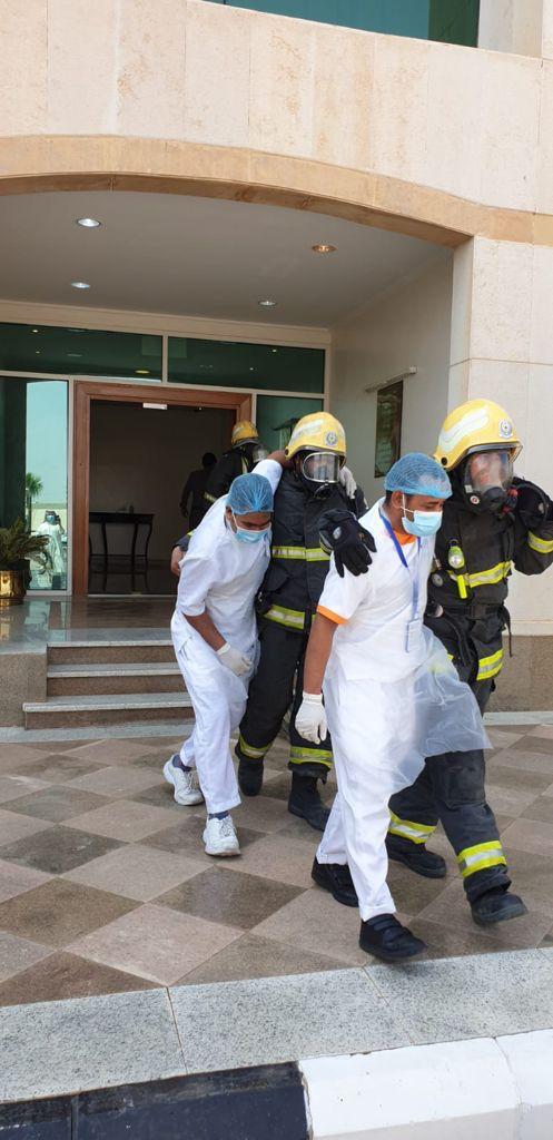 خطة إخلاء وحريق مشتركة بمبنى مركز الدكتور ناصر الرشيد لرعاية الايتام ودار الرعاية الاجتماعية للمسنين بحائل