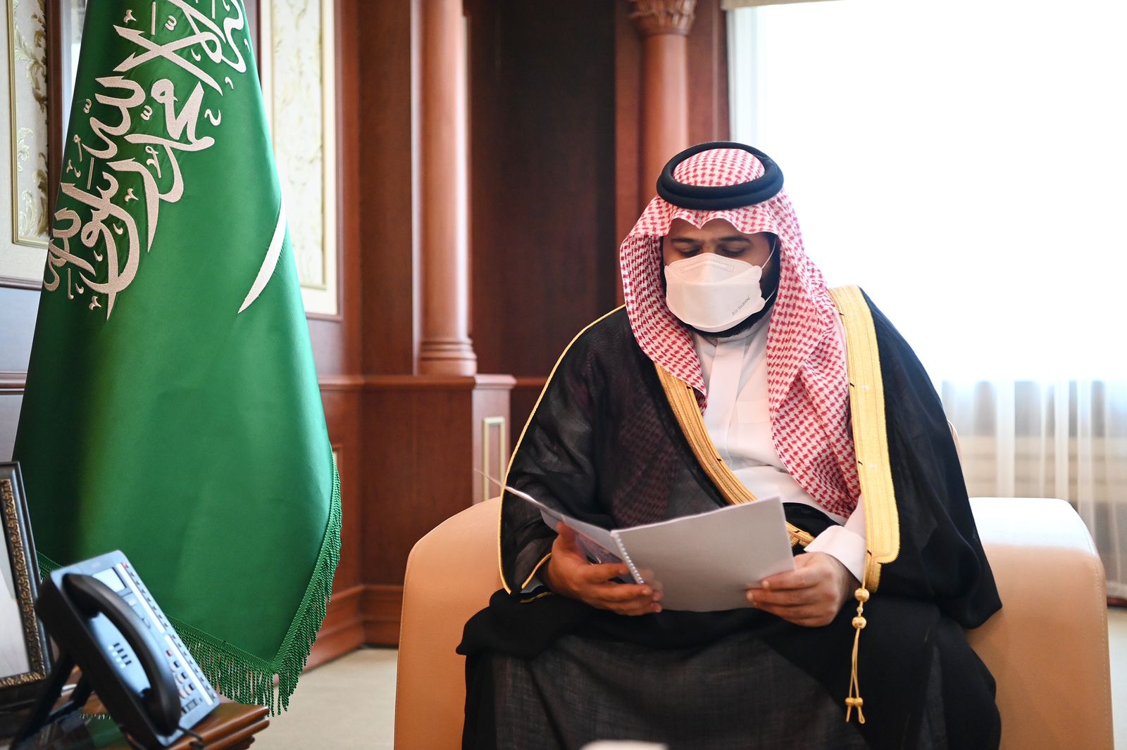تسلم صاحب السمو الملكي الأمير محمد بن عبدالعزيز بن محمد بن عبدالعزيز أمير منطقة جازان بالنيابة ، تقريراً مفصلاً عن جهود وإنجازات إدارة الجوازات بالمنطقة.