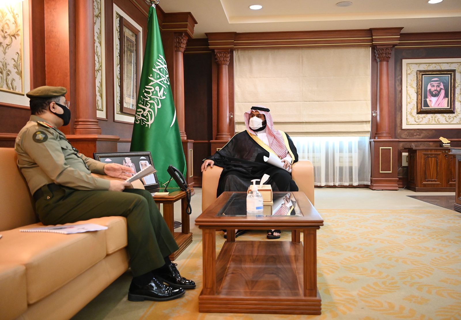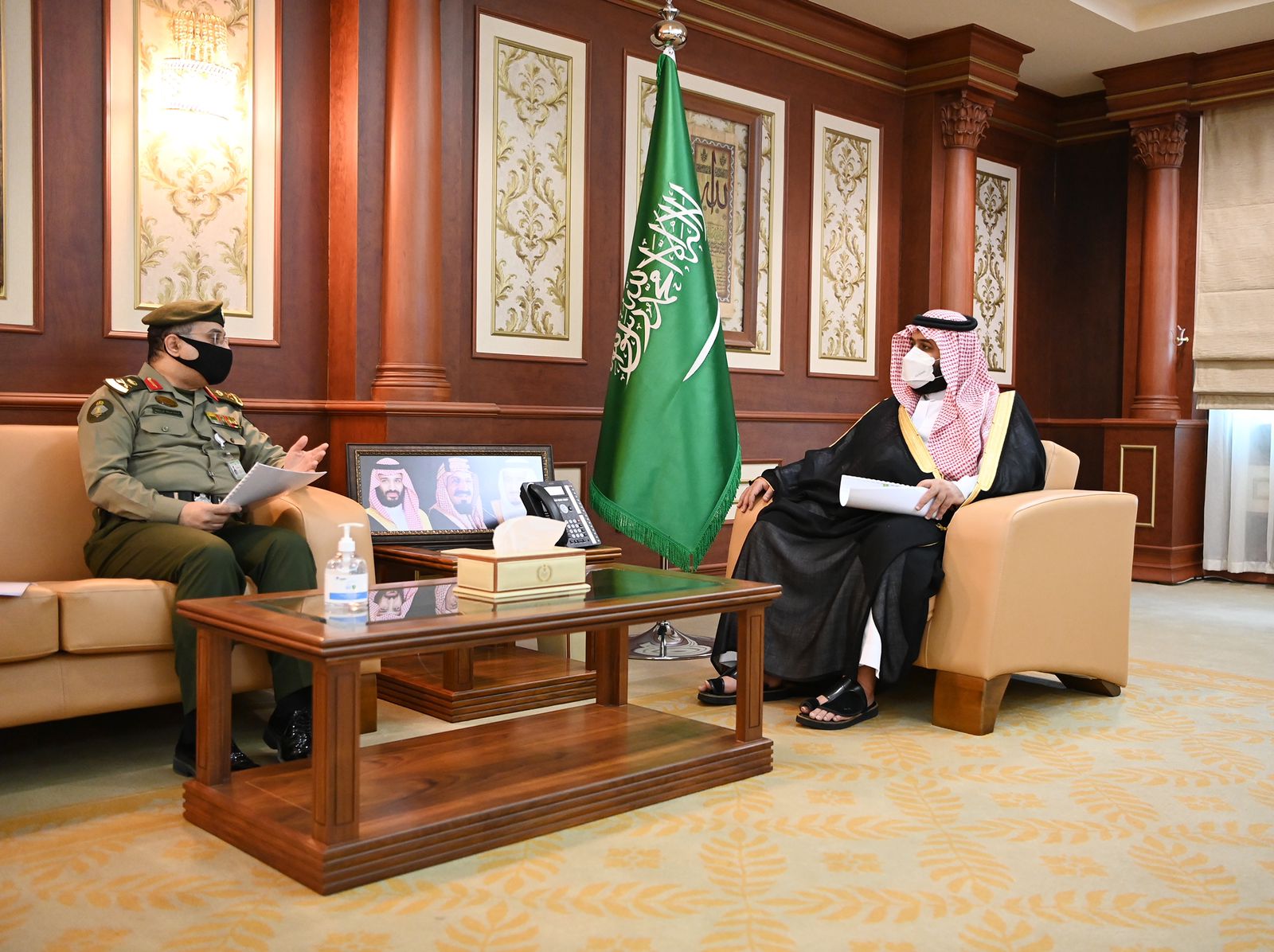 جاء ذلك خلال استقبال سموه في مكتبه في الإمارة اليوم ، مدير جوازات المنطقة اللواء أسامة بن عبدالله أبو ملحة ، الذي قدم لسموه شرحاً عما تضمنه التقرير من جهود واعمال وإنجازات جوازات المنطقة ومن ابرزها الجهود التي تقدمها الإدارة لإنجاز كافة خدمات المواطن والمقيم وتسهيل إجراءات السفر عبر المنافذ الجوية والبحرية وآلية تدشين وافتتاح مكاتب للجوازات بعدد من المحافظات لخدمة المواطنين والمقيمين بها .
