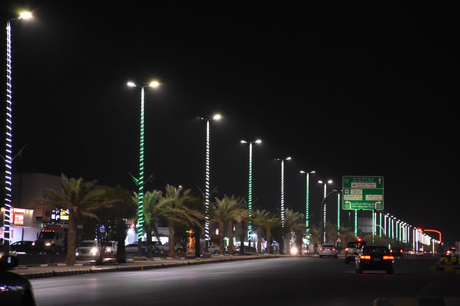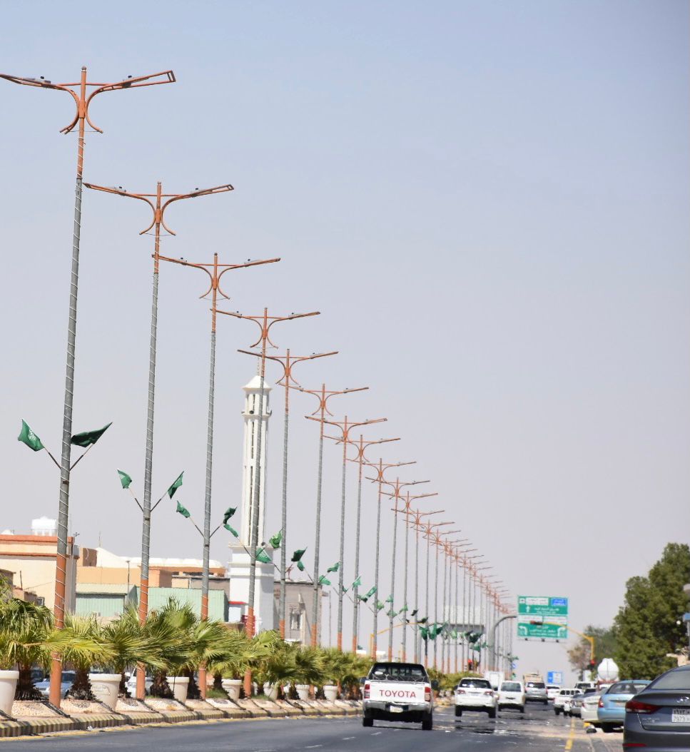م/ أحمد عبدالكريم السلمي ، أن الترتيبات تمت للاحتفاء بهذه المناسبة الغالية، وذلك من خلال تحسين وتجميل المداخل والشوارع الرئيسية والميادين العامة والحدائق وممشى القيصومة العام ، وذلك بتركيب أعلام المملكة والتي بلغ عددها أكثر من ٣٥٠ علماً، ولوحات التهنئة وتزيين أعمدة الانارة باللونين الأبيض والأخضر في عدد من المواقع بالشوارع الرئيسية .