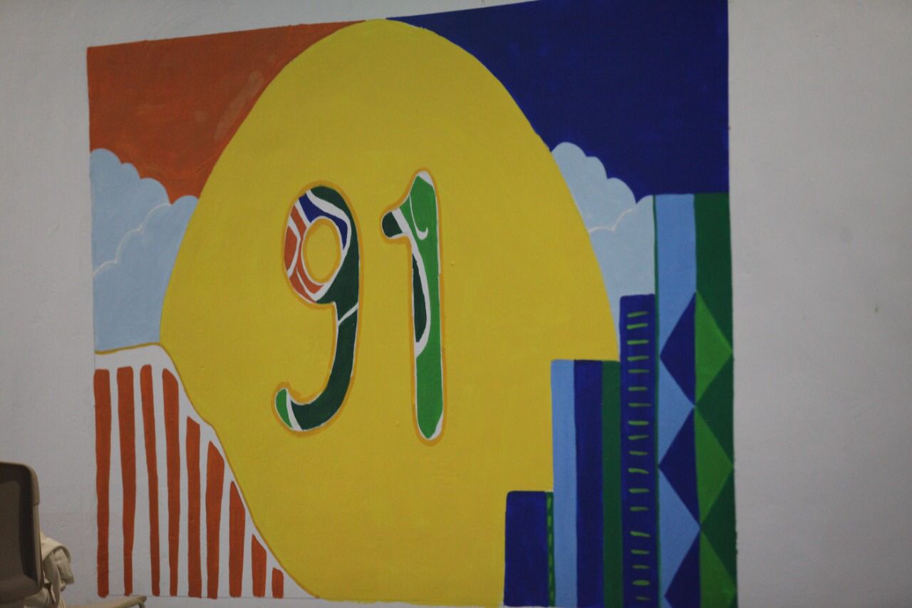 واضاف أن الجدارية بطول 150 متر, وشارك فيها 47 فنانين وفنانات تشكيلين من أبناء المحافظة المنتمين للجمعية .