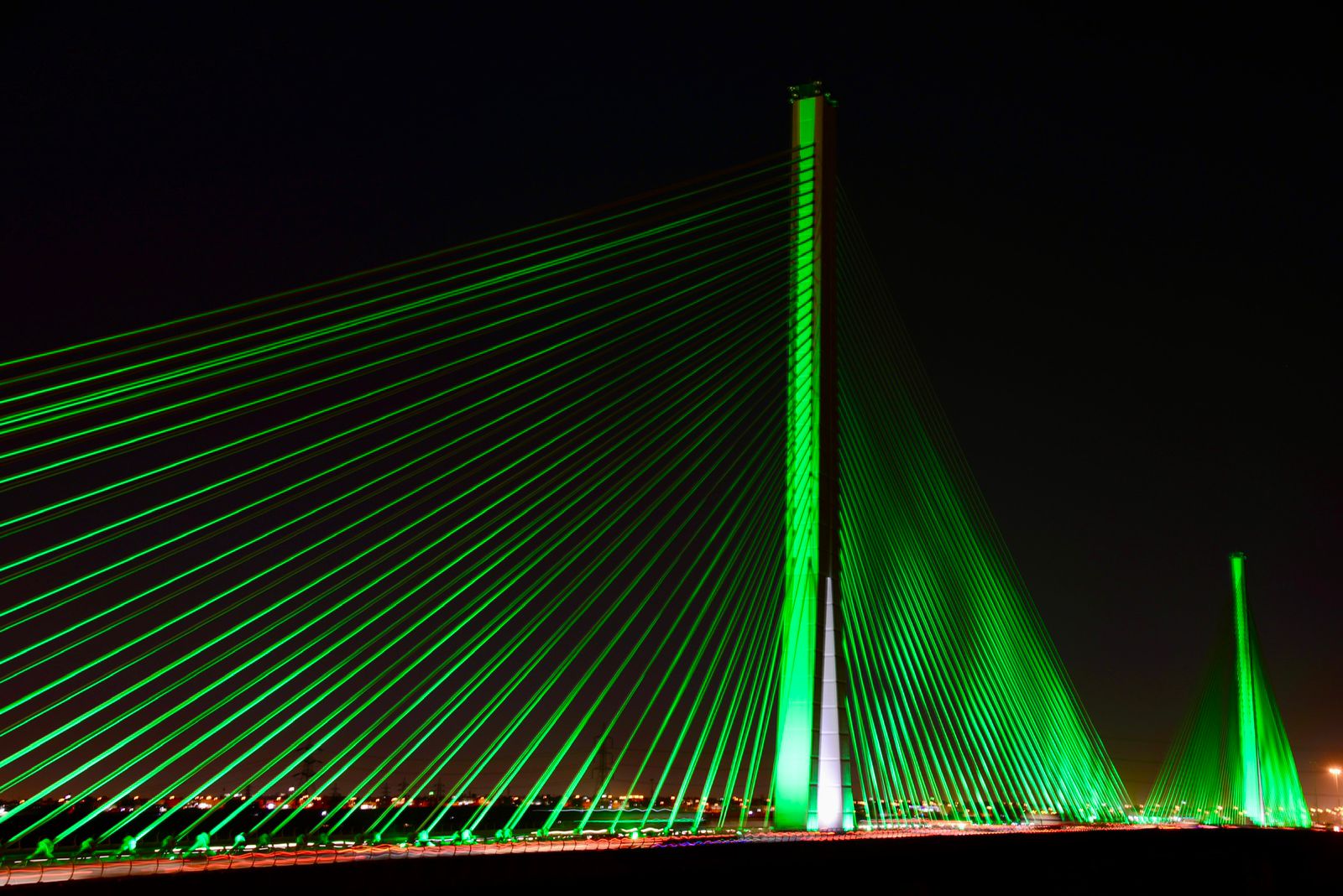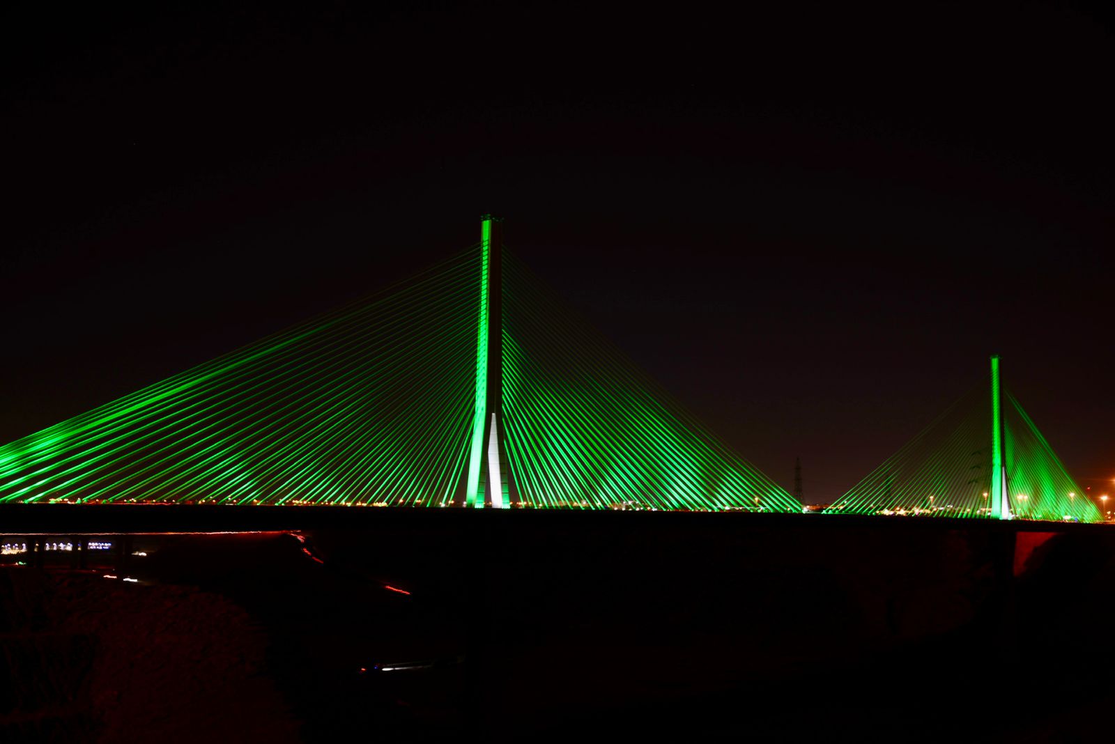 تزامناً مع اليوم الوطني الـ 91 .. وزارة النقل والخدمات اللوجستية تضيء الجسر المعلق باللون الأخضر