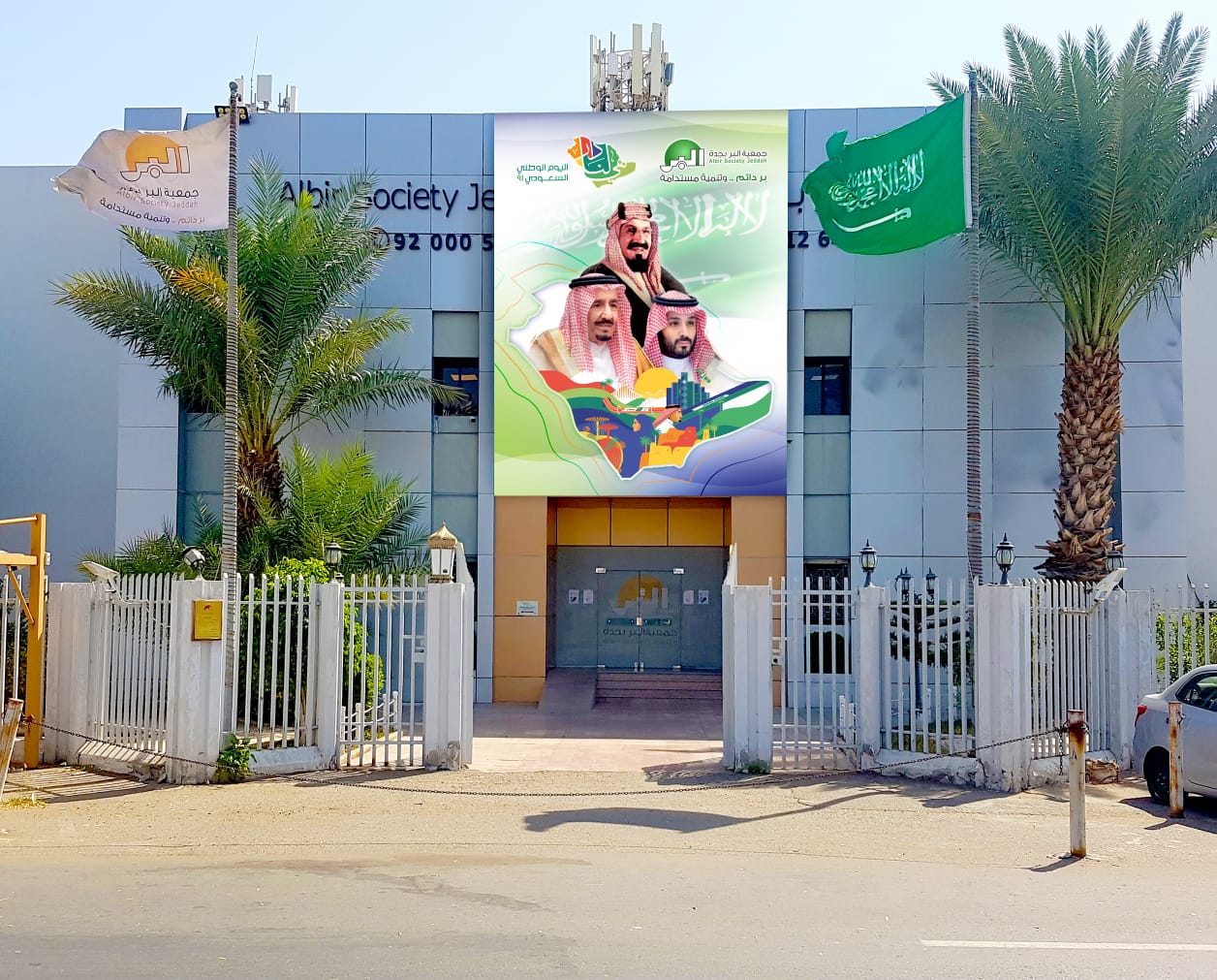 وكانت جمعية البر قد بدأت منذ عدة أيام استعداداتها لاستقبال هذا اليوم المجيد بتزيين مبناها الرئيسي بحي الزهراء بلوحات مزدانة بصور القيادة الرشيدة، وأعلام المملكة.