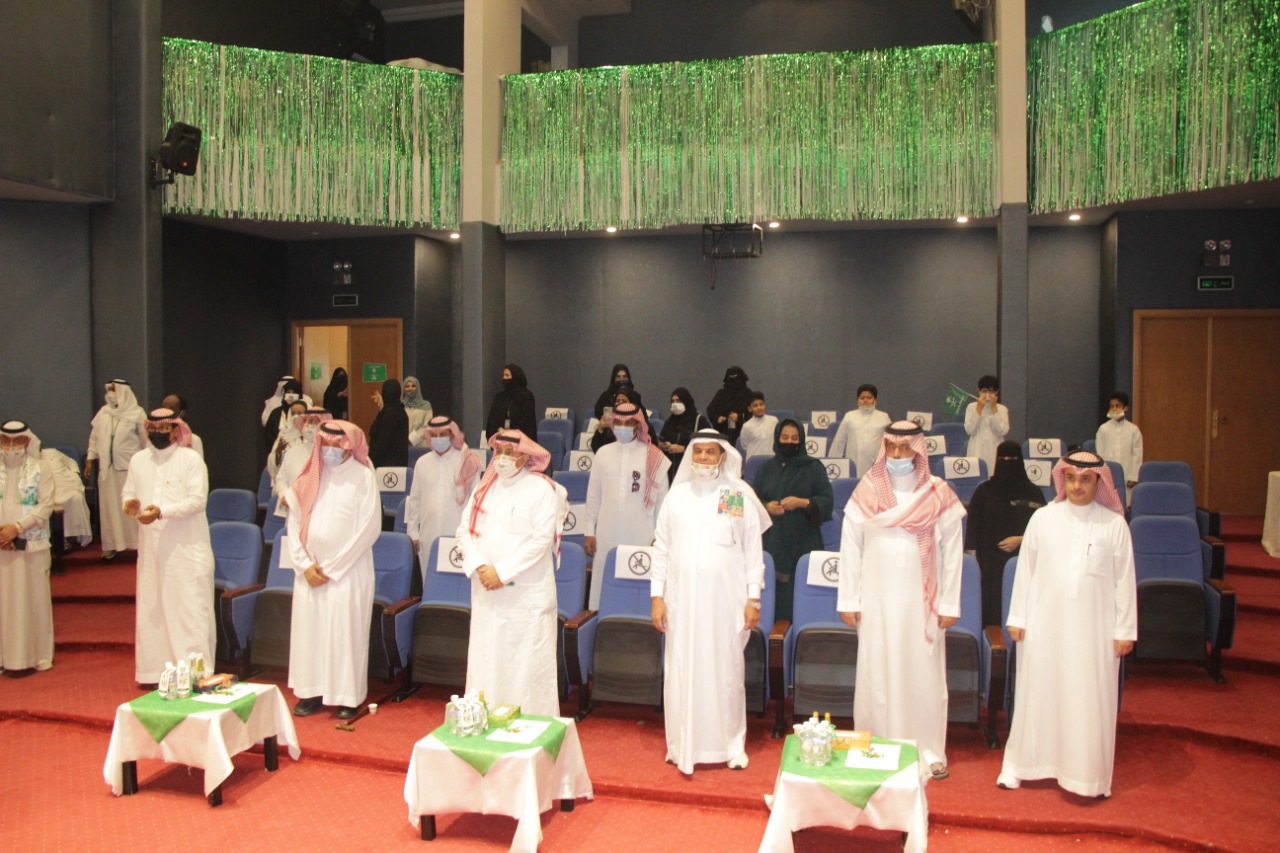 ثم تم عرض فيديو وثائقي يحكي عن قصة التوحيد وما وصلت اليه بلادنا من رفعة وتقدم في هذا العصر الزاهر، تلي ذلك فقرة للمسابقة الثقافية والجوائز وفقرة للمشاركات المفتوحة لمنسوبي الجمعية قدم من خلالها الأستاذ خالد ضيف الله الزهراني مدير إدارة الدعم المؤسسي قصيدة نبطية من شعر العرضة الجنوبية.. ثم تم التقاط الصور الجماعية.