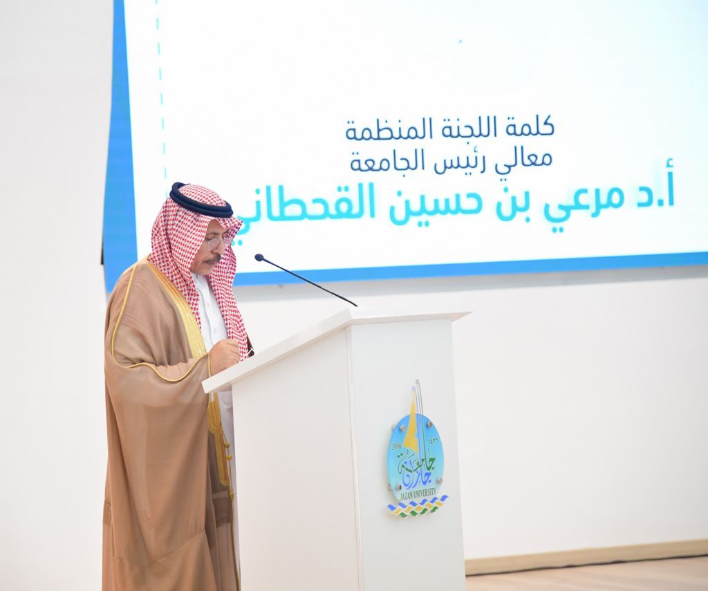 وشهد الحفل كلمات خطابية لمعالي رئيس الجامعة الدكتور مرعي بن حسين القحطاني ، وكلمة أهالي منطقة جازان القاها عضوٍ مجلس الشورى د. عاصم بن محمد مدخلي عبر فيها عن فخر الأهالي واعتزازهم باليوم الوطني الـ 91 للمملكة.