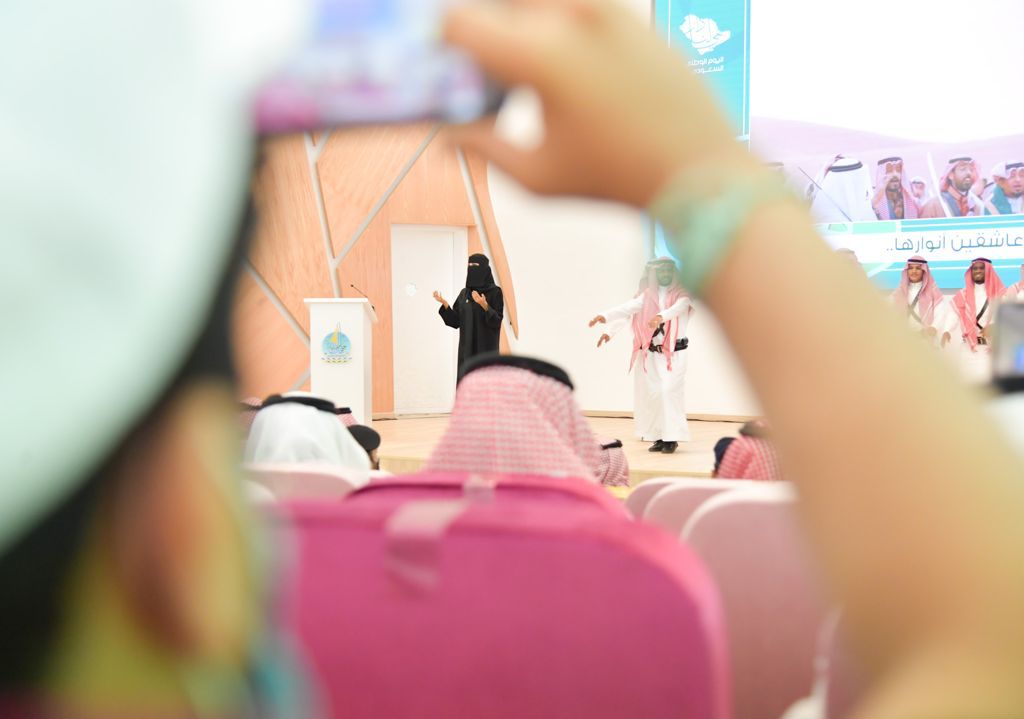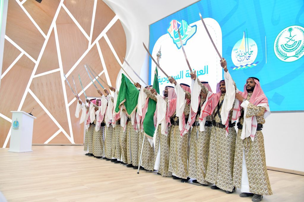 كما تضمن الحفل قصائد شعرية وطنية ، ومعرضًا فنيًّا ضم مشاركات طلاب وطالبات جامعة جازان الذين عبروا عن حبهم للوطن عبر لوحات تشكيلية وصور فوتوغرافية وعروض فنية وطنية، كما قدم طلاب وطالبات جامعة جازان عرضاً فنيًا بعنوان ” مالنا إلا دارنا ”