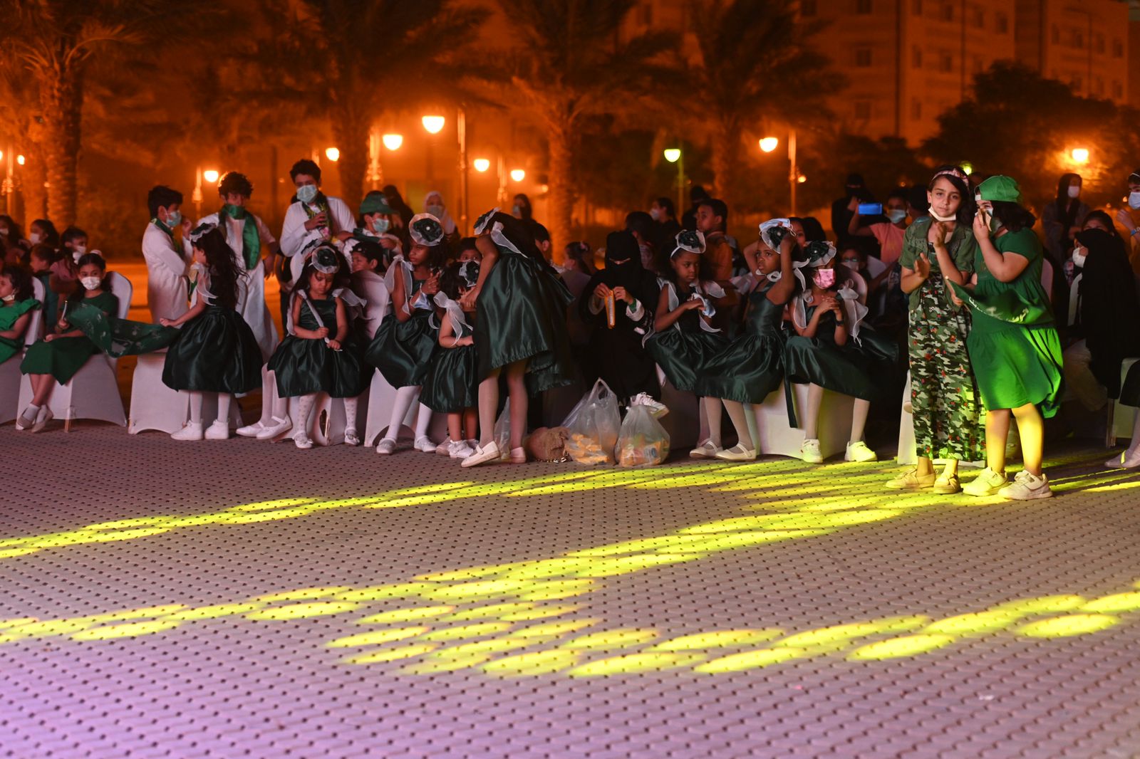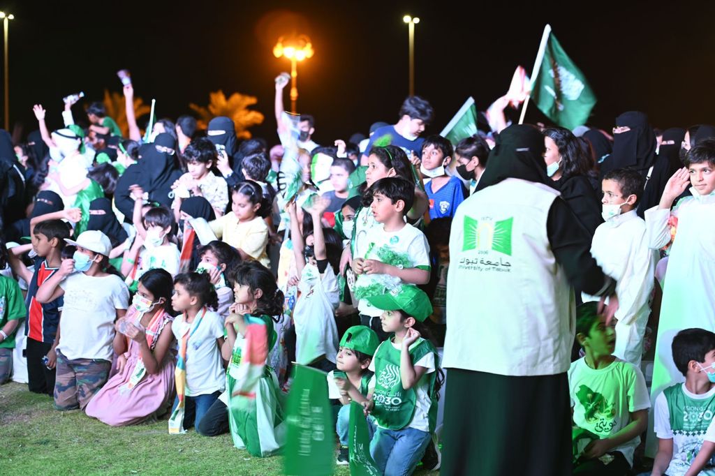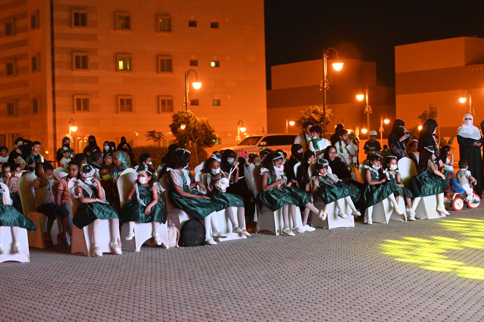 وبين عميد شؤون الطلاب بالجامعة د.ماجد بن صلاح بلعلا بأن الاحتفالية أشتملت على لوحات إنشادية ومسرحية وطنية واوبريت وطني وفيلم وثائقي من إنتاج إدارة العلاقات العامة والإعلام وبرامج منوعة لأطفال وهدايا للحضور وذلك وسط حضور من المجتمع المحلي وتواجد للجهات الأمنية.
