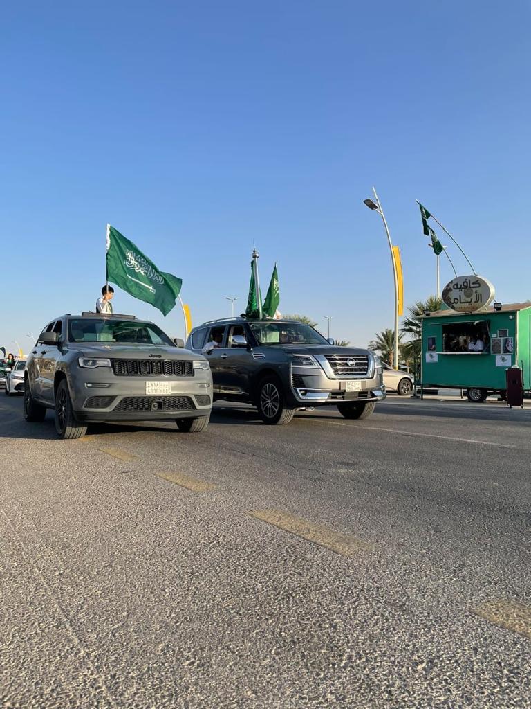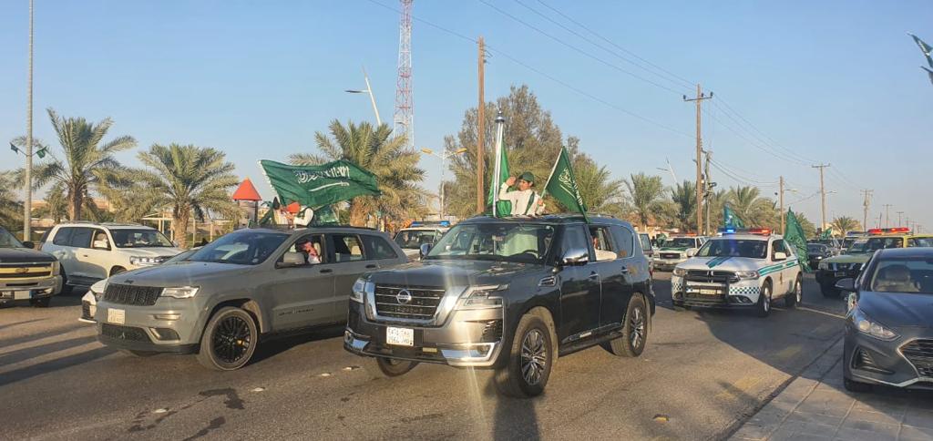 ابتهاجاً بيوم الوطن وعمت البهجة الجميع في يومنا الوطني والأطفال يلوحون بالأعلام السعودية فيما توشحت الدوائر الحكومية بالسعيرة اللون الأخضر والأبيض وأعلام الوطن في أحلى حلتها وعمت مظاهر الفرح والسرور الأهالي .
