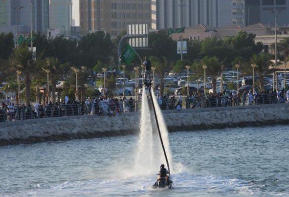 فيما تم توزيع آلاف الهدايا على الزوار والمتنزهين في الكورنيش والواجهة البحرية والطرق الرئيسية احتفالا بهذه المناسبة، إضافة الى بث الأغاني الوطنية في كافة الدوارات والكورنيش والواجهة البحرية والتقاطعات الحيوية في الخبر احتفالا بهذه المناسبة.