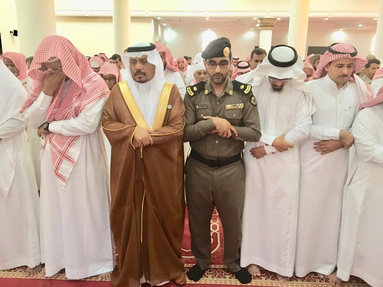 وتقدم المصلين محافظ بيش حسن بن عبدالله أبوشرحة ورؤساء الدوائر الحكومية ومشايخ وأهالي بيش وزملاء الشهيد.