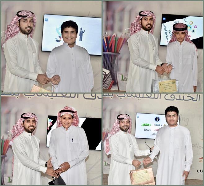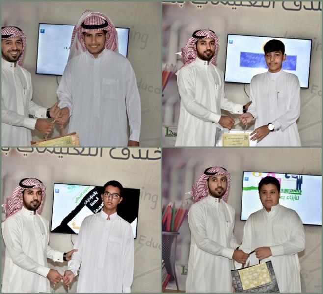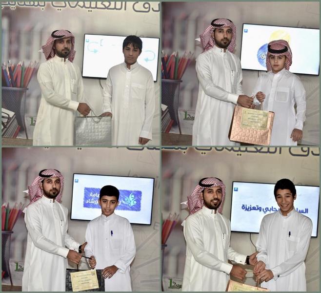 و قام البلوي بتقديم شكره و تقديره للطلاب المشاركين ، مثمنًا لهم هذه المشاركة المتميزة ،حاثًا أقرانهم بالتفاعل التعاون فيما يقدم بالمدرسة من برامج . و ذكر البلوي بأن تكريم الطلاب يأتي دعمًا من المدرسة للمبدعين و المتميزين و تحفيزًا لهم و لبقية الطلاب و شحذ هممهم للمشاركة بفاعلية في كافة البرامج ، مبينًا سعي المدرسة في تعزيز السلوكيات الإيجابية و تشجيعها و تسليط الضوء على هذه الإيجابيات و دعمها .