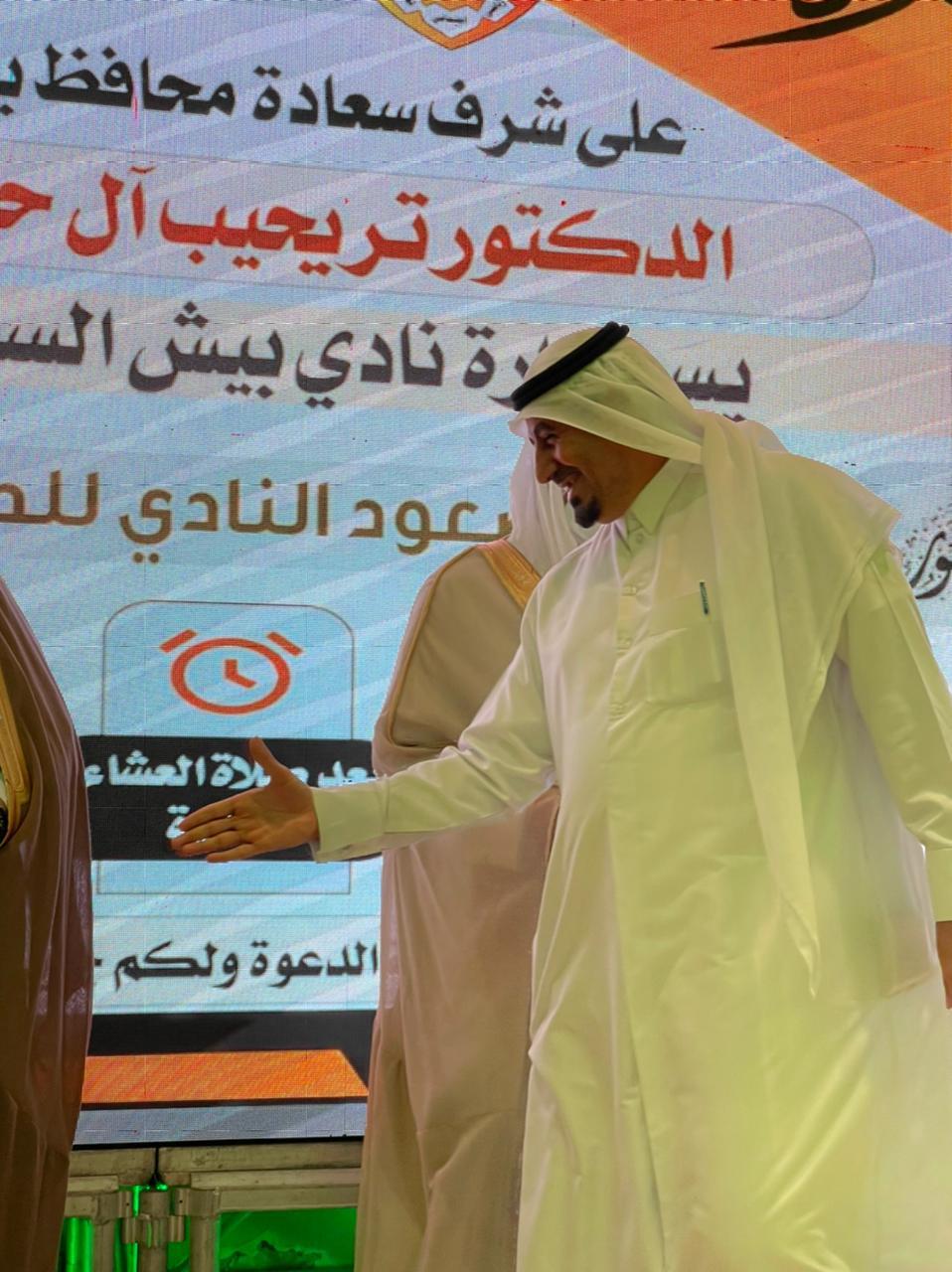 رعى محافظ بيش د . تريحيب بن عماش آل حفيظ مساء اليوم حفل نادي بيش الرياضي للصعود للدرجة الثالثة بحضور مدير عام مكتب وزارة الرياضة بمنطقة جازان إبراهيم رياني وقد بدأ الحفل بالنشيد الوطني بعده كلمة رئيس نادي بيش حسن أبو راسين وقدم عرض مرئي يحكي إنجازات النادي ثم قدم مدير مكتب الرياضة بجازان إبراهيم رياني كلمة وذكر فيها إنجازات النادي وما يجده من دعم حكومي من قيادتنا الرشيدة بعد ذلك ألقاء محافظ بيش د. تريحيب بن عماش آل حفيظ كلمة هنأ فيها رئيس وأعضاء مجلس إدارة نادي بيش واللاعبين وجماهير النادي، على الإنجاز الذي تحقق بصعود الفريق لأندية الدرجة الثالثة . وذلك أثناء حفل النادي بالمناسبة ، متمنيا للفريق التوفيق في الصعود بمرحلة القادمة، منوهاً بما تجده الرياضة بالمنطقة ومحافظاتها من دعم واهتمام من سمو أمير منطقة جازان وسمو نائبه .