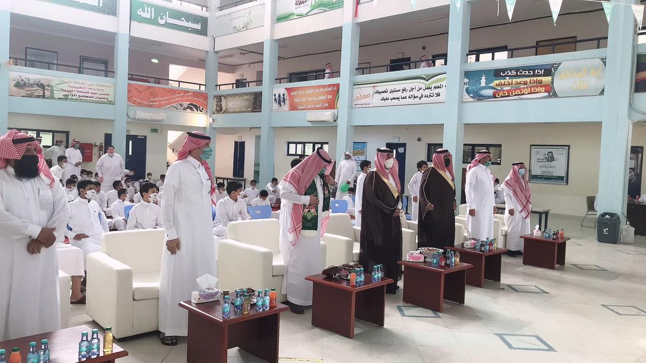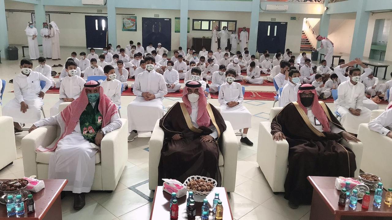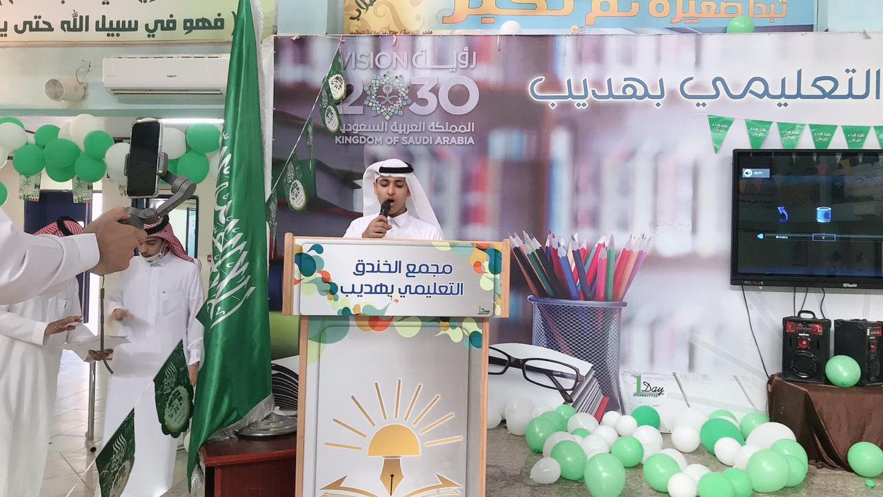 واستهل الحفل بتلاوة آيات من الذكر الحكيم، ثم ألقى مدير مكتب التعليم بصوير محمد الرويلي، كلمة أشار فيها إلى أن هذه المناسبة غالية على قلوبنا ,التي يجب أن يستشعر أبناؤنا الطلاب أهميتها من أجل نهضة الوطن وبسواعدهم تتحقق تطلعات ولاة الأمر – حفظهم الله -.