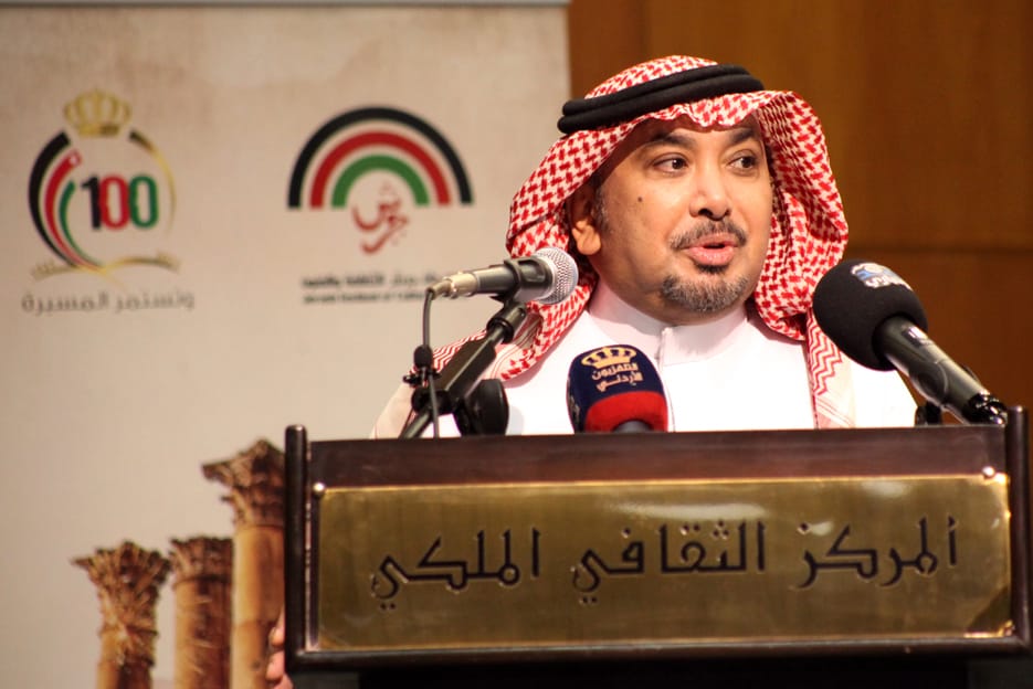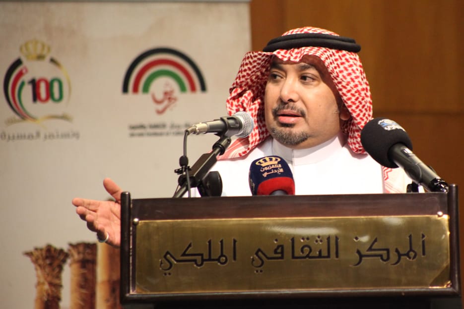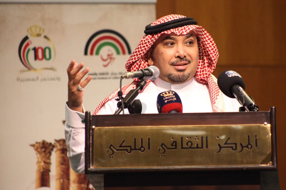 وفي كلمة ترحيبية لرئيس اتحاد الكتاب والأدباء الاردنيين الشاعر عليان العدوان تناول العلاقات الاخوية التي تجمع بين الشعبين الشقيقين وعلى مدى التاريخ وعلى قوة الروابط الاخوية ما بين القيادتين الملهمتين لجلالة الملك عبدالله الثاني ابن الحسين واخيه خادم الحرمين الشريفين الملك سلمان بن عبد العزيز تخللها قصيدة مهداة لخادم الحرمين الشريفين وولي عهده والشعب السعودي .