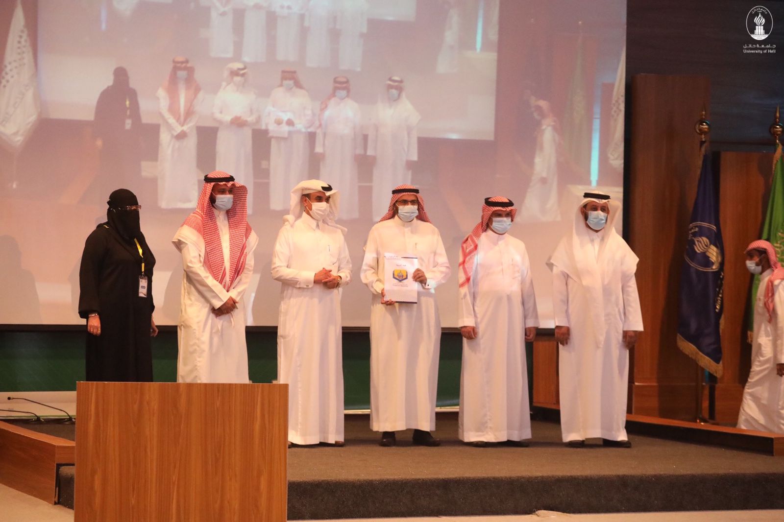 رعى رئيس جامعة حائل، الأستاذ الدكتور راشد بن مسلط الشريف-اليوم الأحد ٢٦/٢/١٤٤٣هـ -حفل تكريم المتميزين من الباحثين والباحثات، وتسليم عقود مشروعات المجموعات البحثية في الدورة الثالثة الذي نظمته وكالة الجامعة للدراسات العليا والبحث العلمي ، تحت إشراف عمادة البحث العلمي ،