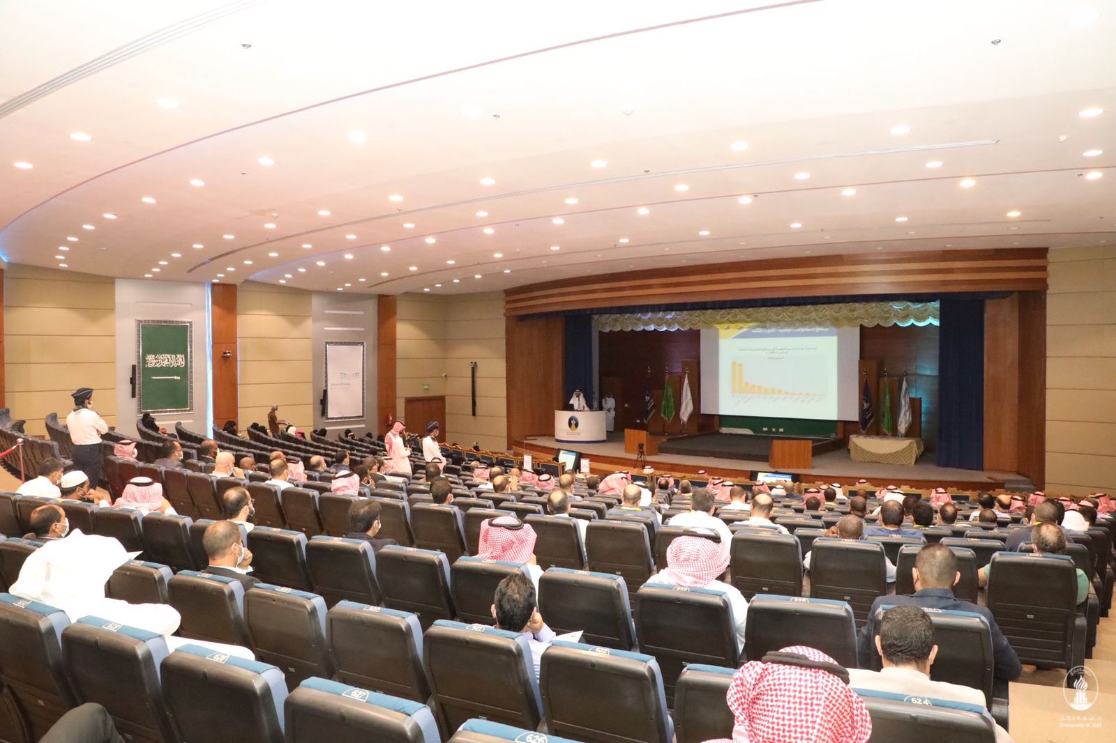 وقد بدأ الحفل بالقرآن الكريم، ثم ألقى عميد البحث العلمي، الدكتور هيثم السيف، كلمة أوضح فيها إن البحث العلمي في الجامعة يحظى بالمكانة العالية والدعمٍ والمتابعة المستمرة من سعادة رئيس الجامعة، الأستاذ الدكتور راشد بن مسلط الشريفً؛حيث أن البحث العلمي هو أحد الأركان الرئيسة التي بنيت عليها الجامعة، وهو ميدان التنافس بين جامعات العالم. وفي ضوء ذلك عملت وكالة الجامعة للدراسات العليا والبحث العلمي، ممثلة بعمادة البحث العلمي إيمانا بأهمية الدور المنوط بها، وانطلاقا من رؤية الجامعة للعمل نحو التميز البحثي عملت على إطلاق حزمة من البرامج الجديدة النوعية والتي تهدف إلى إحداث حراك بحثي في أوساط الجامعة، وتمكين كافة الباحثين والباحثات، وتشجيعهم على القيام بأبحاث علمية مميزة تسهم في نشر العلم والمعرفة، ودراسة ومعالجة القضايا الوطنية والدولية، وإجراء أبحاث علمية تلامس احتياجات المجتمع، وتسهم في رفع مؤشرات الجامعة وتصنيفها، وتكريم المتميزين والمتميزات، وتشجيعهم وإيجاد بيئة محفزة لهم، مقدماً شكره وتقديره لرئيس الجامعة، الأستاذ الدكتور راشد بن مسلط الشريف، على جهوده المميزة، واهتمامه وتشجيعه للباحثين والباحثات، ودعم كافة برامج البحث العلمي بالجامعة و أشار إلى أن تم قبول 114 مجموعة بحثية موزعة على 668 باحثاً وباحثة ضمن برنامج مشروعات المجموعات البحثية في الدورة الثالثة.