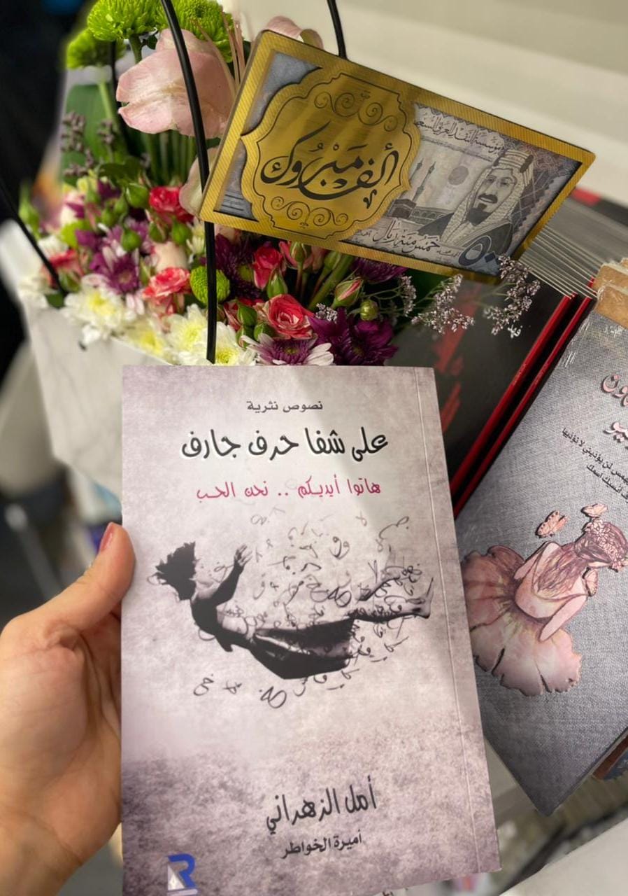 من الحجم المتوسط .. وقد صدر الكتاب عن دار الرائدية للنشر و التوزيع وتعد الكاتبة أمل الزهراني من الأقلام المتميزة والمبدعة في كتابة النصوص النثرية وقد حصلت الكاتبة على لقب “أميرة الخواطر” لفوزها في المسابقة التى اقامتها دار الرائدية للنشر على مستوى تسعون دولة في النثر الأدبي وقد حضر حفل توقيع الكاتبة أمل الزهراني لكتابها “على شفا حرف جارف مساء أمس الثلاثاء الموافق ١٤٤٣/٢/٢٨ بمعرض الرياض الدولي للكتاب عدد من الأهل و الأقارب والأصدقاء وكذلك عدد من الكتاب والكاتبات والاعلاميين والإعلاميات .