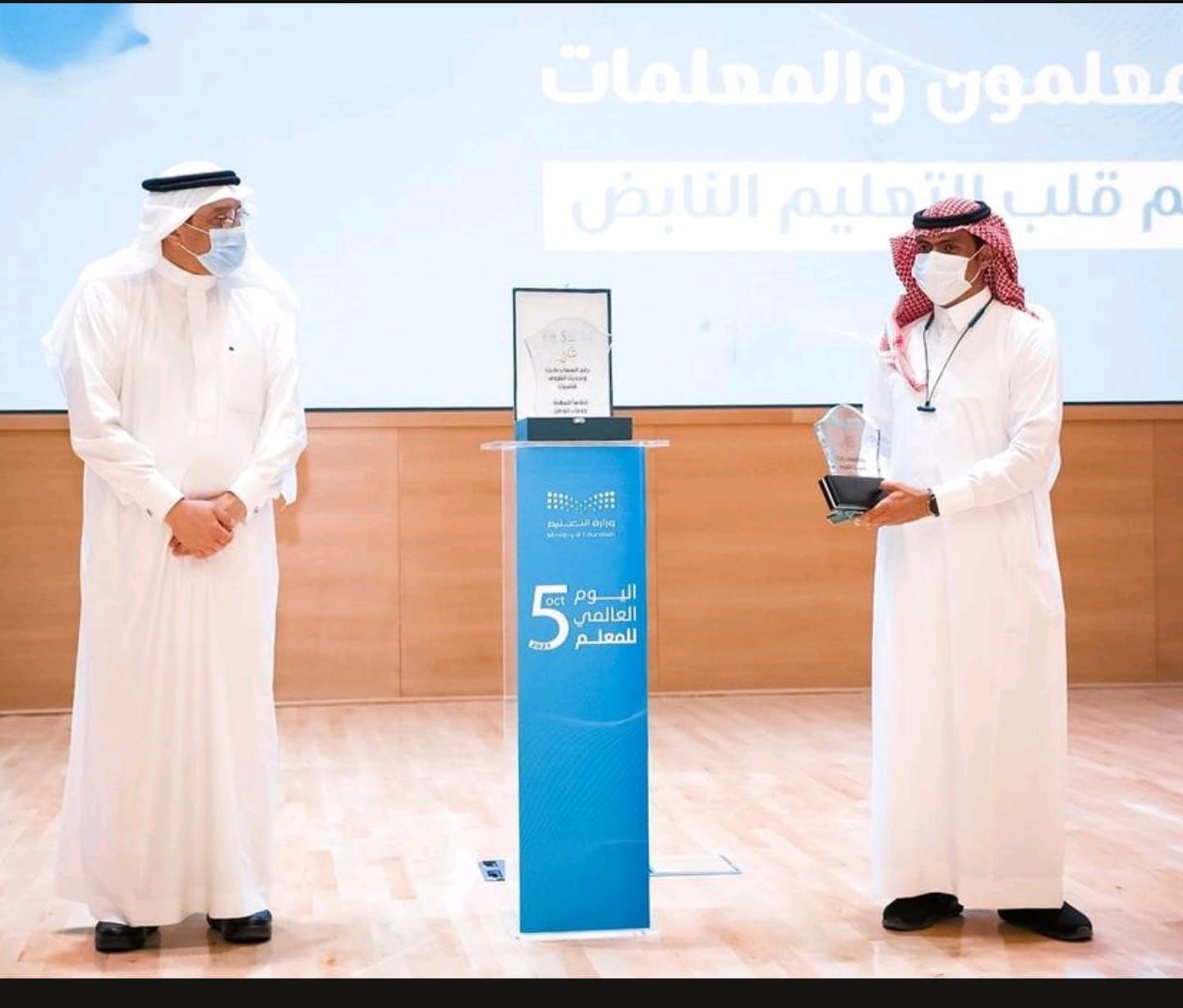 تزامناً مع يوم المعلم العالمي الذي يوافق 5 أكتوبر من كل عام، وتقديراً لدور المعلمين والمعلمات في بناء الإنسان وإخلاصهم في أداء رسالتهم التعليمية، كرم معالي وزير التعليم الدكتور حمد بن محمد آل الشيخ عددا من المعلمين والمعلمات المتميزين والمتميزات في مختلف إدارات التعليم وذلك في احتفالية وزارة التعليم باليوم العالمي للمعلّم، تحت شعار “المعلّم قلب التعليم النابض”.