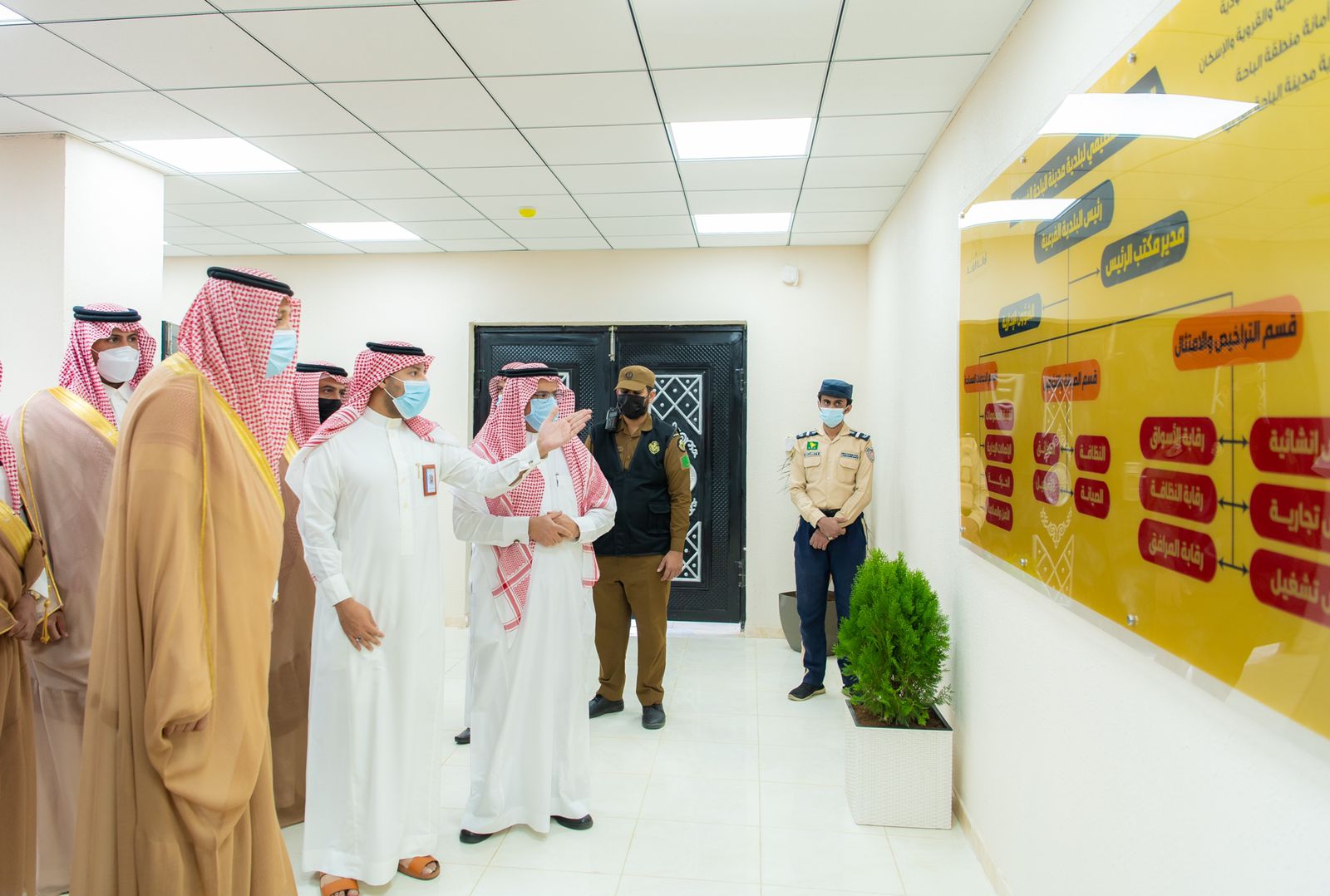 وعند وصول سموه ازاح الستار عن اللوحة التذكارية للمبنى ، ثم تجول في إداراته وأقسامه ، والتقى بالموظفين ، مستمعاً إلى شرح من أمين منطقة الباحة الدكتور علي بن محمد السواط عن البلدية الجديدة التي تقدم كافة الخدمات للمواطنين من خلال أقسامها الرئيسية المتمثلة في الشؤون الفنية والخدمات والتراخيص والرقابة وصحة البيئة والتشغيل والصيانة والحدائق والمتنزهات والنظافة العامة والإصحاح البيئي، مشيراً إلى أنها البلدية الفرعية الأولى التي يتم استحداثها بمدينة الباحة وذلك لرفع كفاءة الخدمة وتسريعها وتفعيل النهج اللامركزي في تقديم ومتابعة أغلب الخدمات البلدية دون الحاجة إلى الرجوع إلى الأمانة .